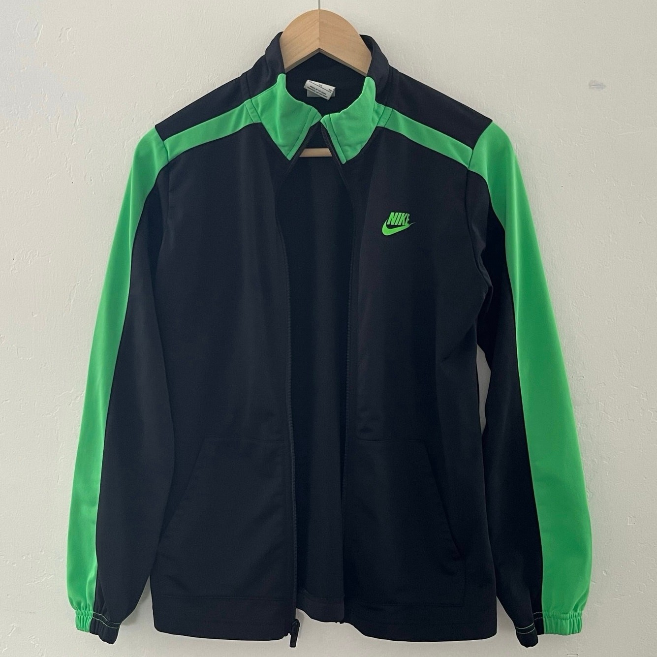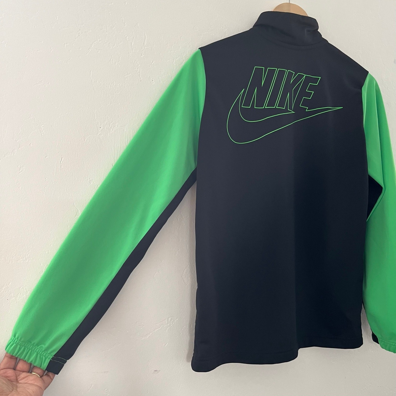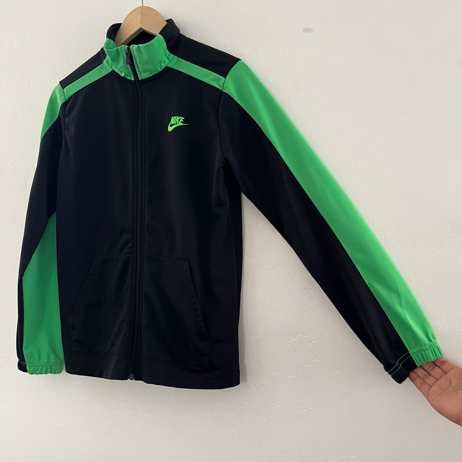 как выглядит Nike Kids Track Jacket Zip-Up Spellout Logo Pockets Unisex Black Green Youth XL фото