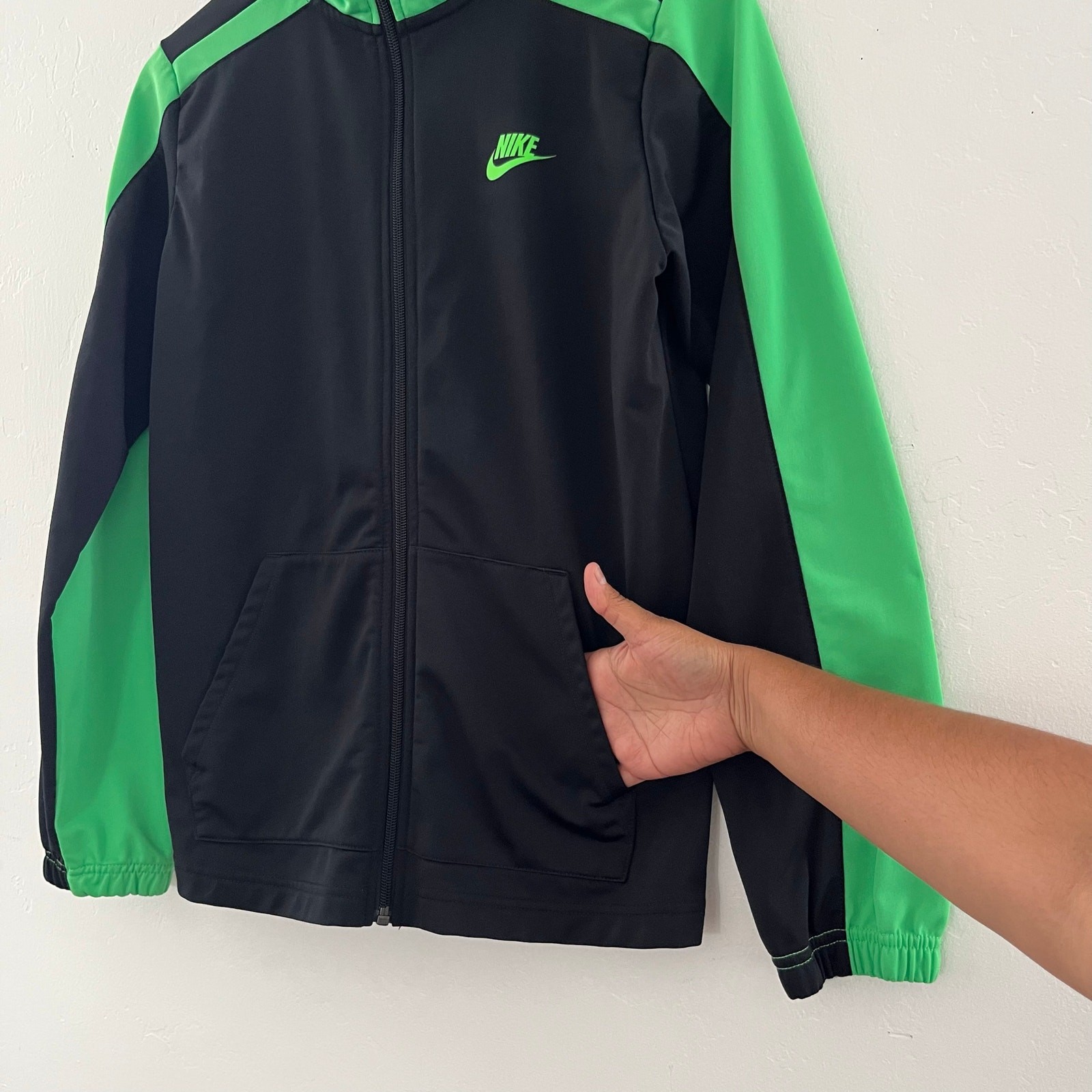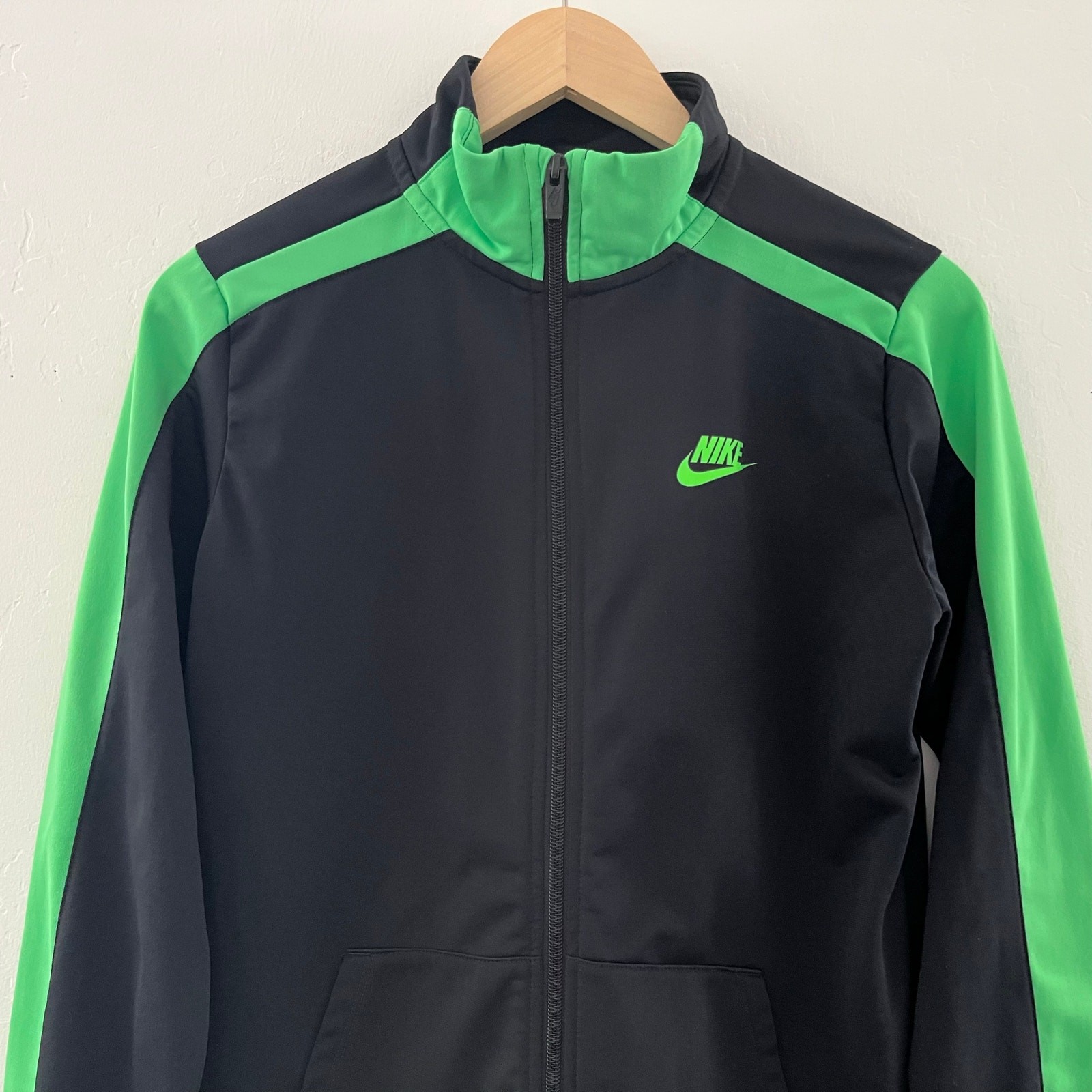 Nike Kids Track Jacket Zip-Up Spellout Logo Pockets Unisex Black Green Youth XL