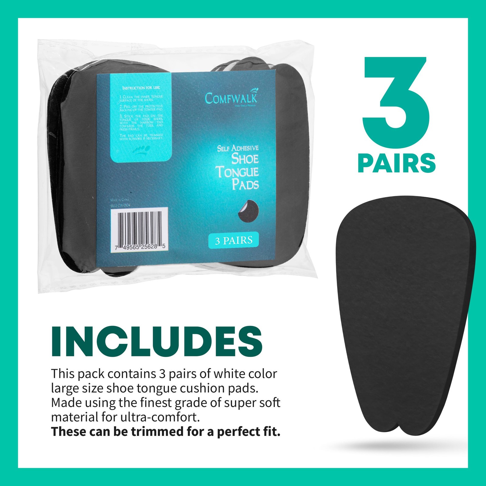 Felt Tongue Pads for Shoes - Soft Self-Adhesive Inserts, 3 Pairs Black