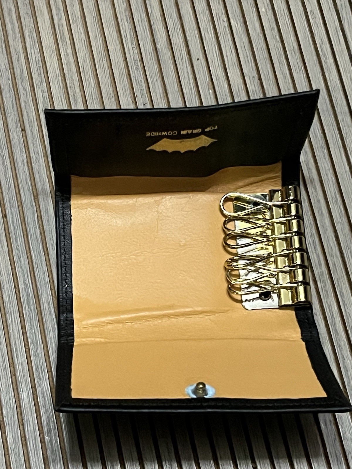 как выглядит Black Cowhide Leather Key Holder Trifold Wallet фото