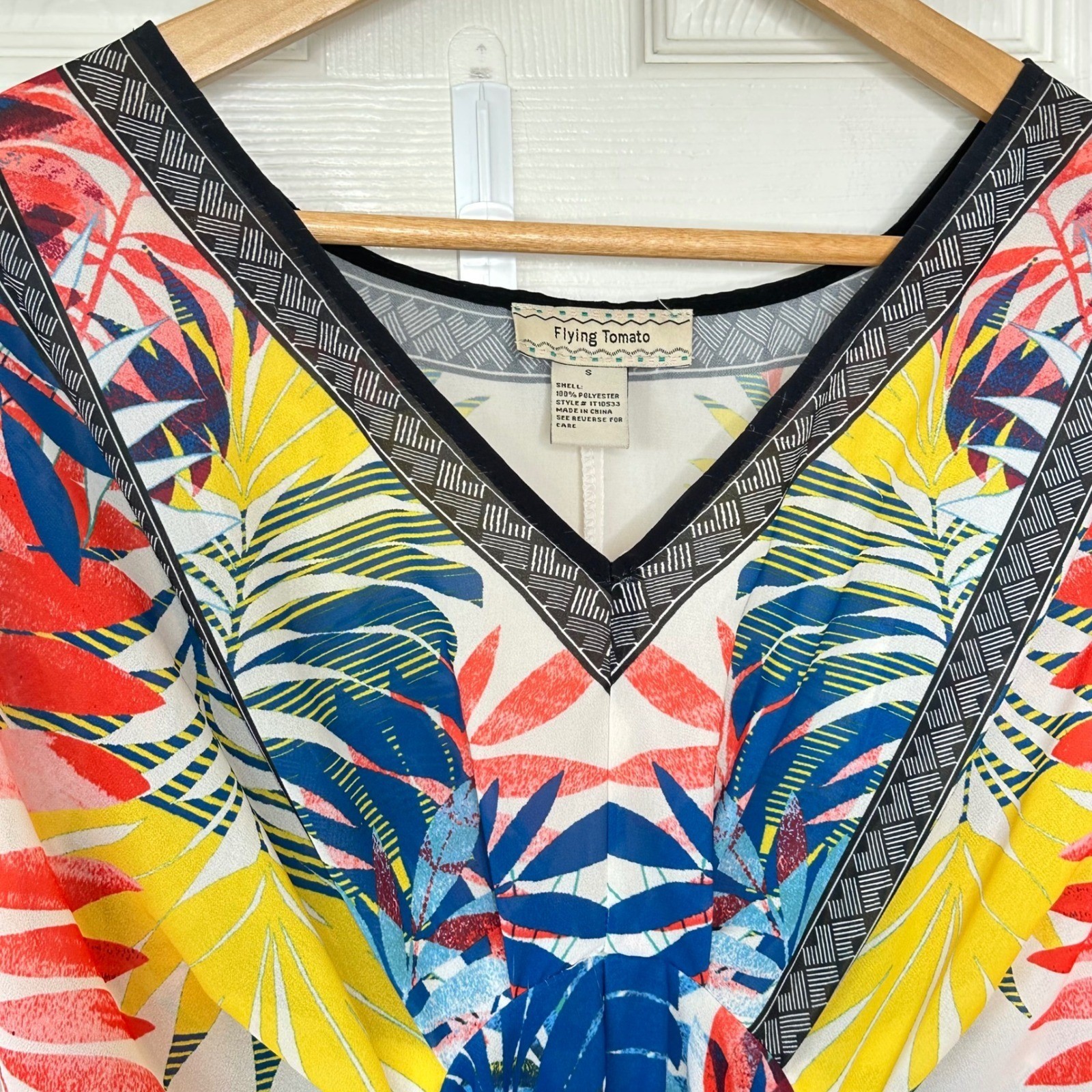 как выглядит Flying Tomato Kimono Top Tropical Print Boho Bohemian Resort Wear Blouse Small фото