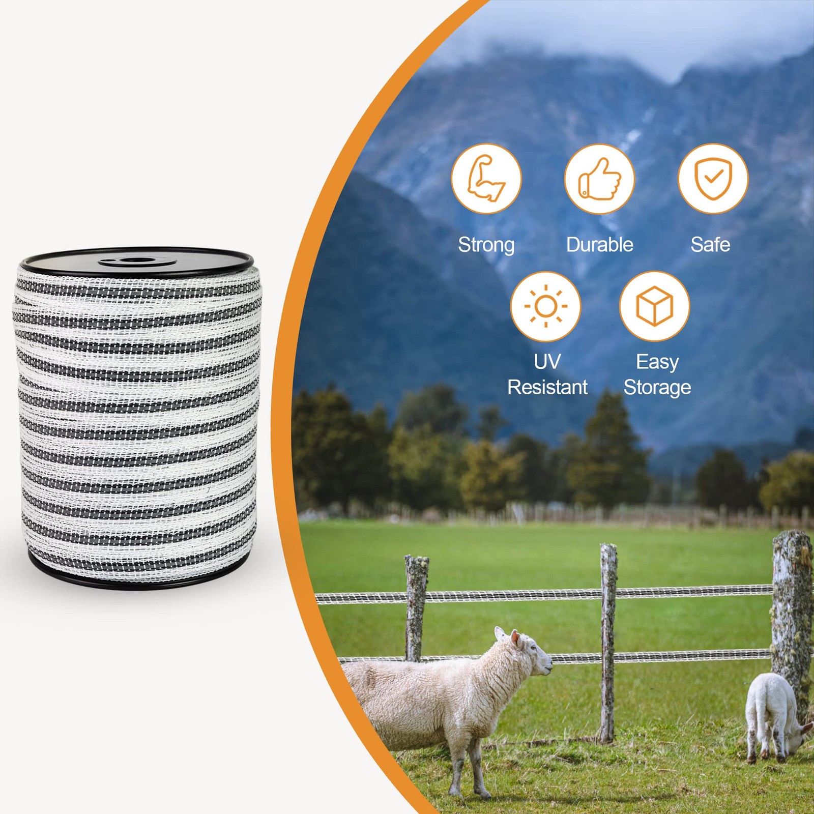 HENGTONG 656ft Electric Fence Poly Tape Reflective Horse Fencing 3/5in 15mm