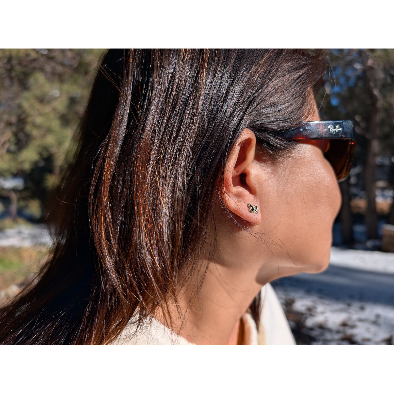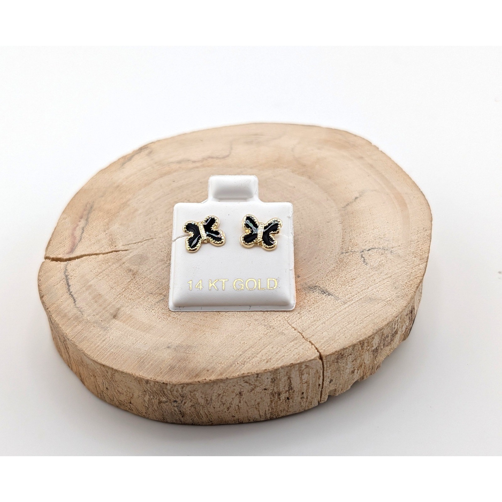 Women's 14K Yellow Gold Mini Butterfly Black Enamel Stud Earrings