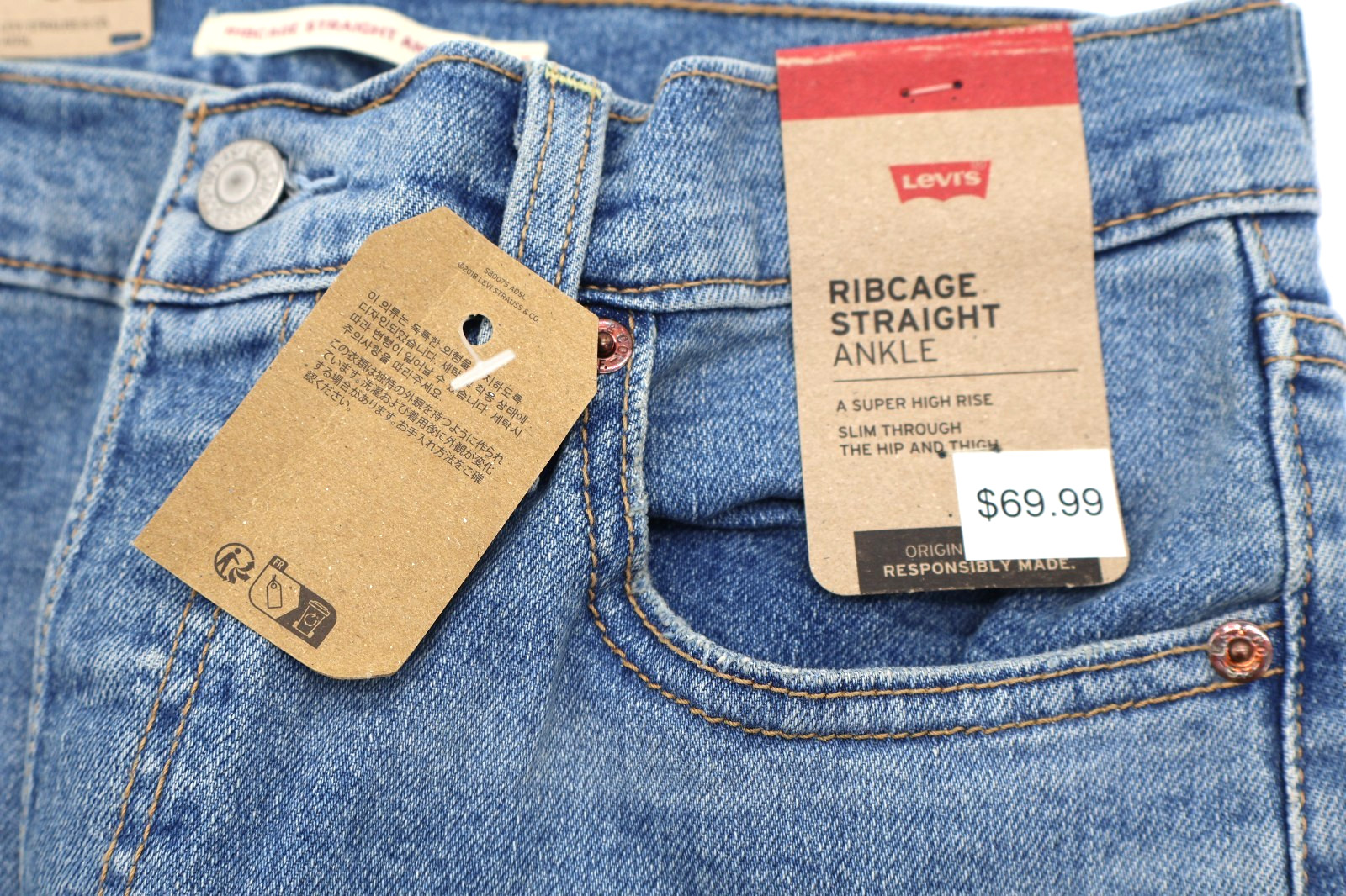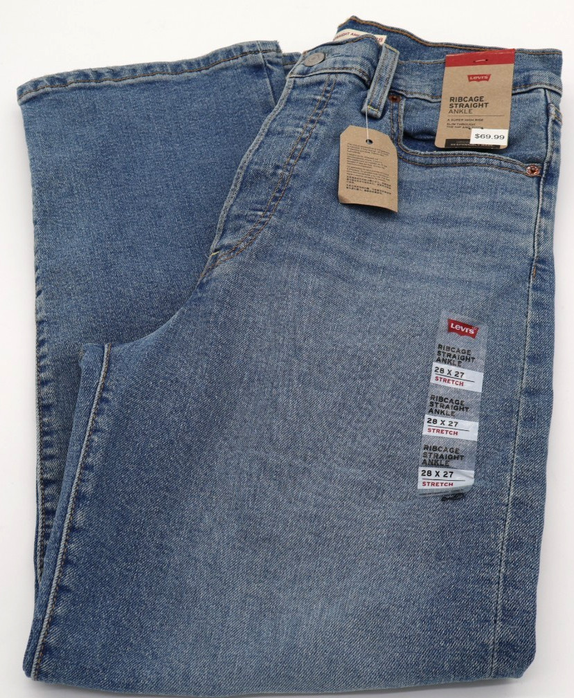 как выглядит Levis Women Ultra High Rise Ribcage Straight Jeans Center Lane Blue 28 x 27 NWT фото