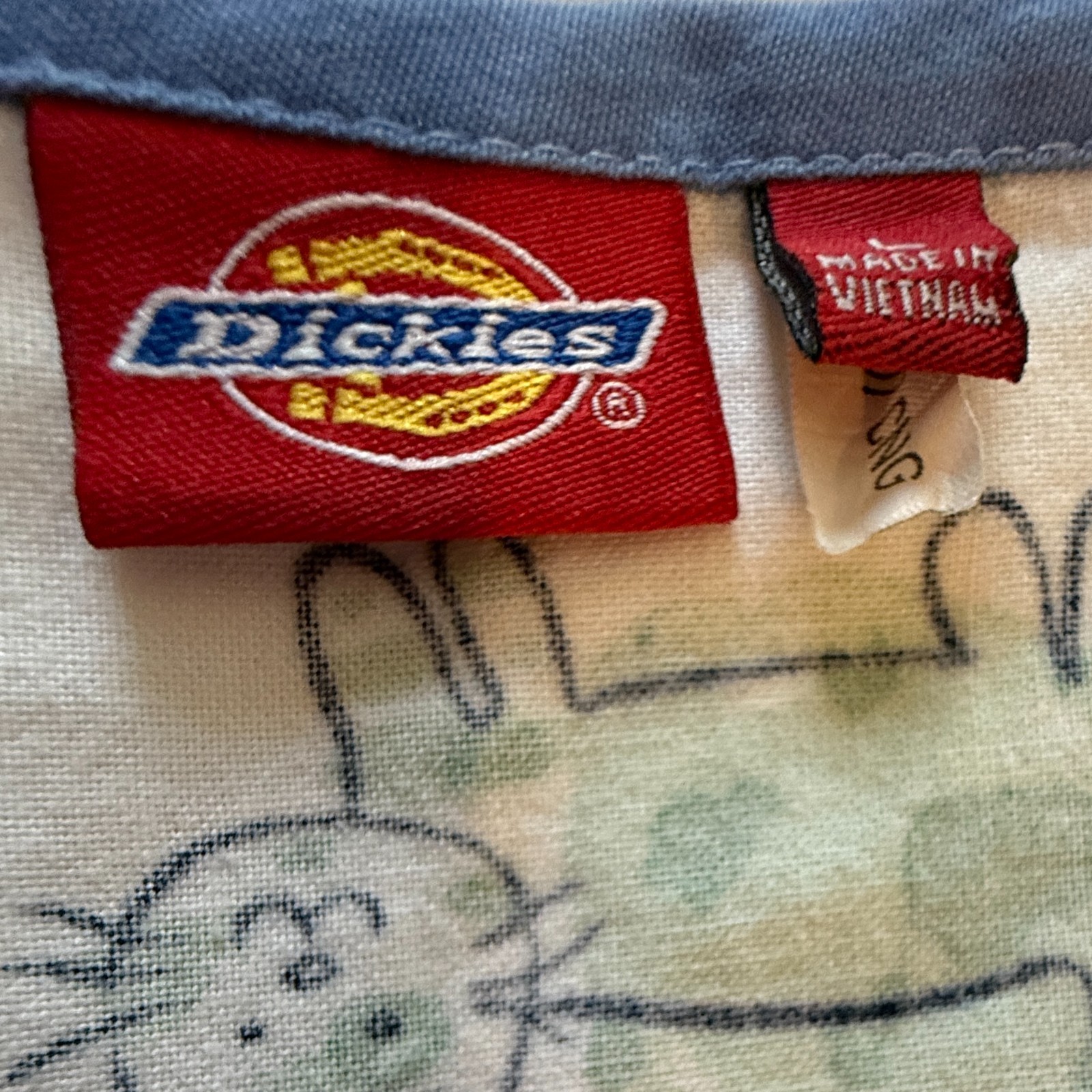 Dickies Uniform Scrub Top White w/Dogs Cats Pattern Large Preowned A3-19