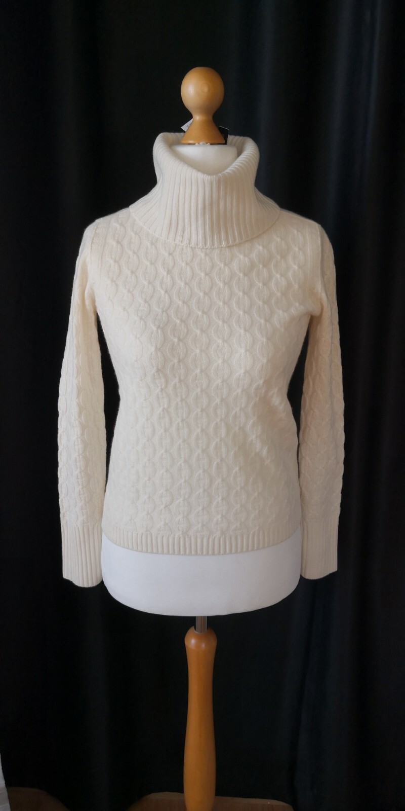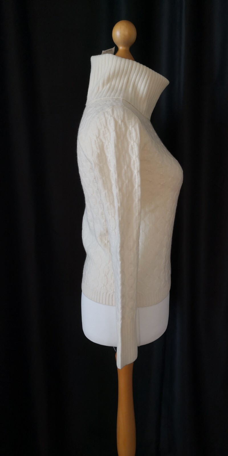 как выглядит NWT 380 Magaschoni 100 CASHMERE Cable Knit Ivory Turtleneck SWEATER Sz XS NEW фото