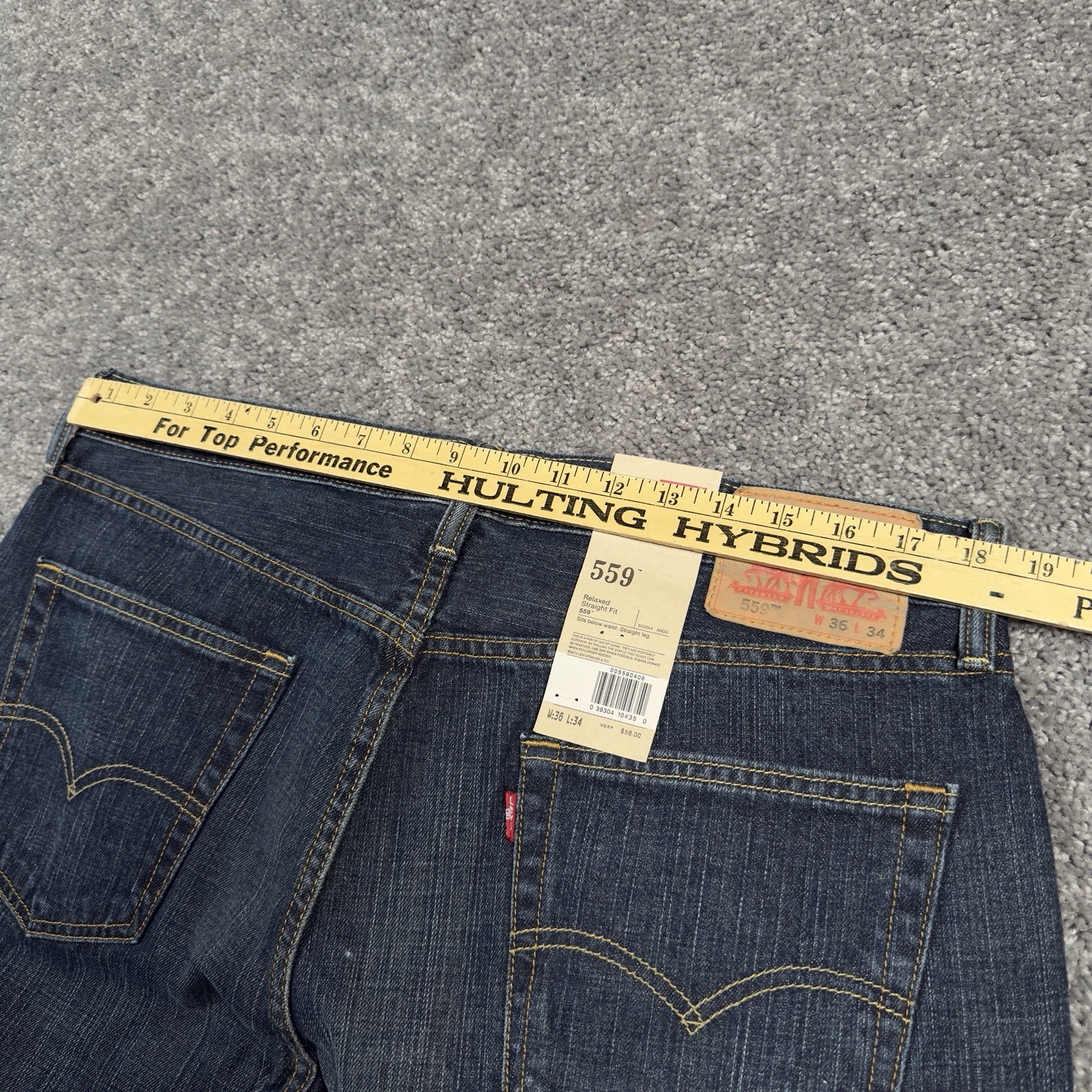 New Levis 559 Jeans Mens 36x34 Blue Relaxed Straight Denim Dark Wash Zip Fly 58