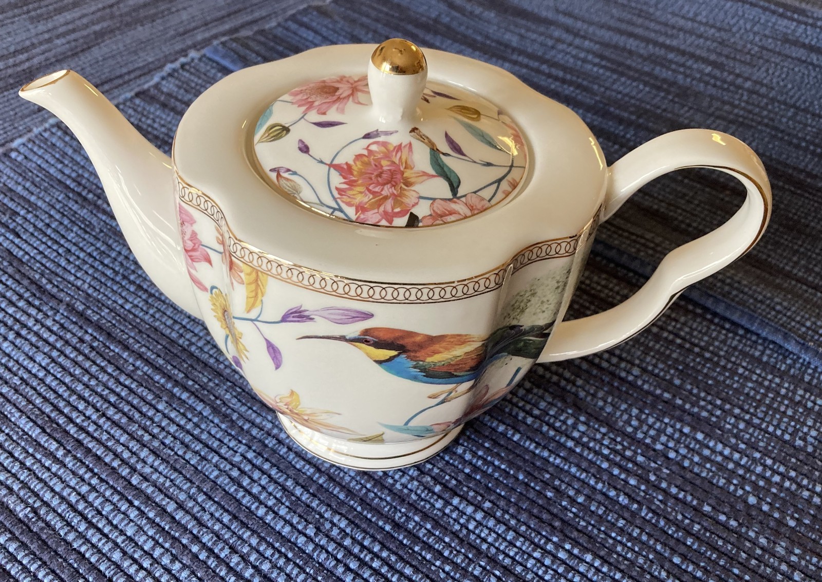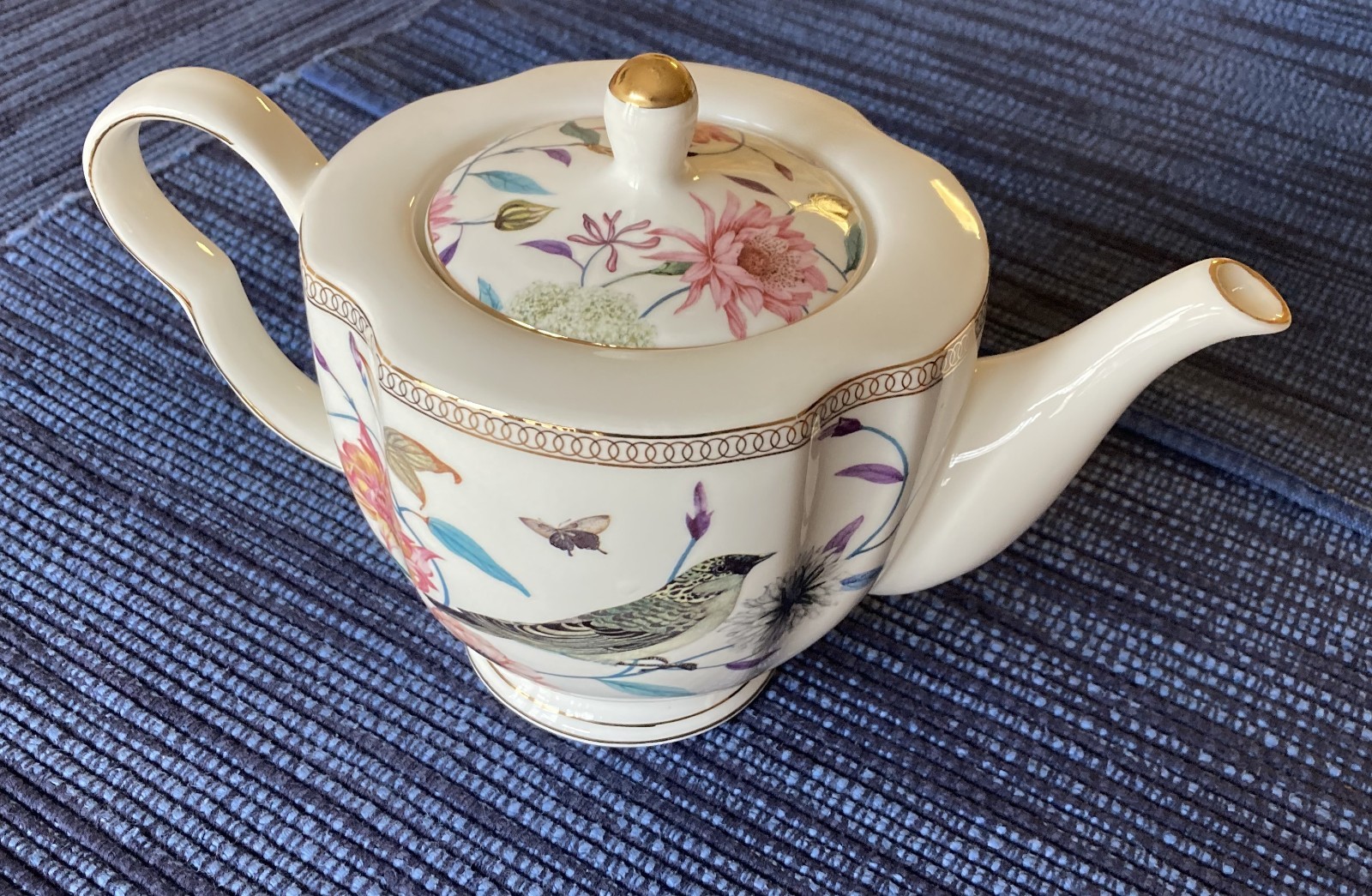 Porcelain floral and bird design 4-piece tea set