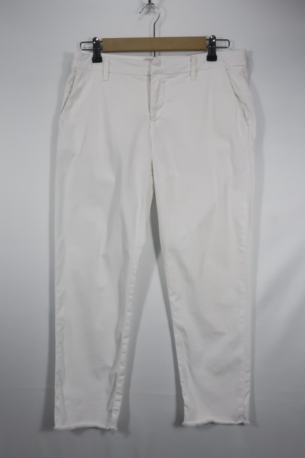 Frank Eileen White Wicklow Pants Italian Chinos Cropped Stretch Raw Hem Size 8
