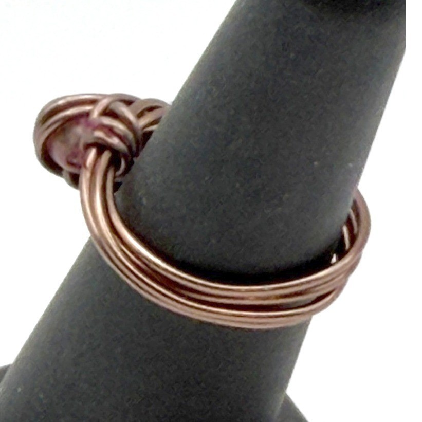 как выглядит Handmade Copper Wire Wrapped Pink Stone Ring Size 6 Artisan Style фото