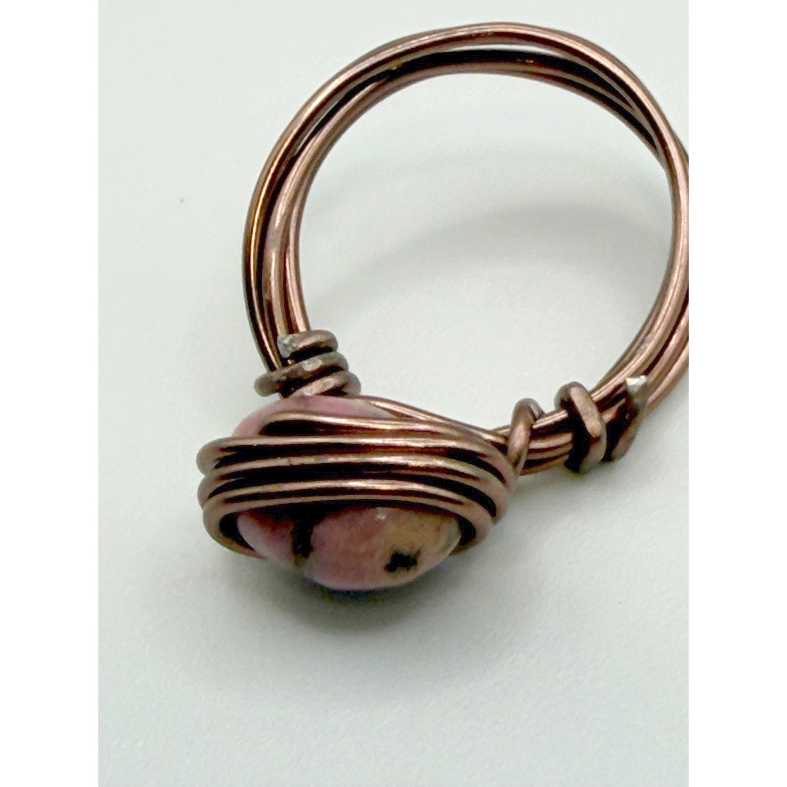 Handmade Copper Wire Wrapped Pink Stone Ring Size 6 Artisan Style