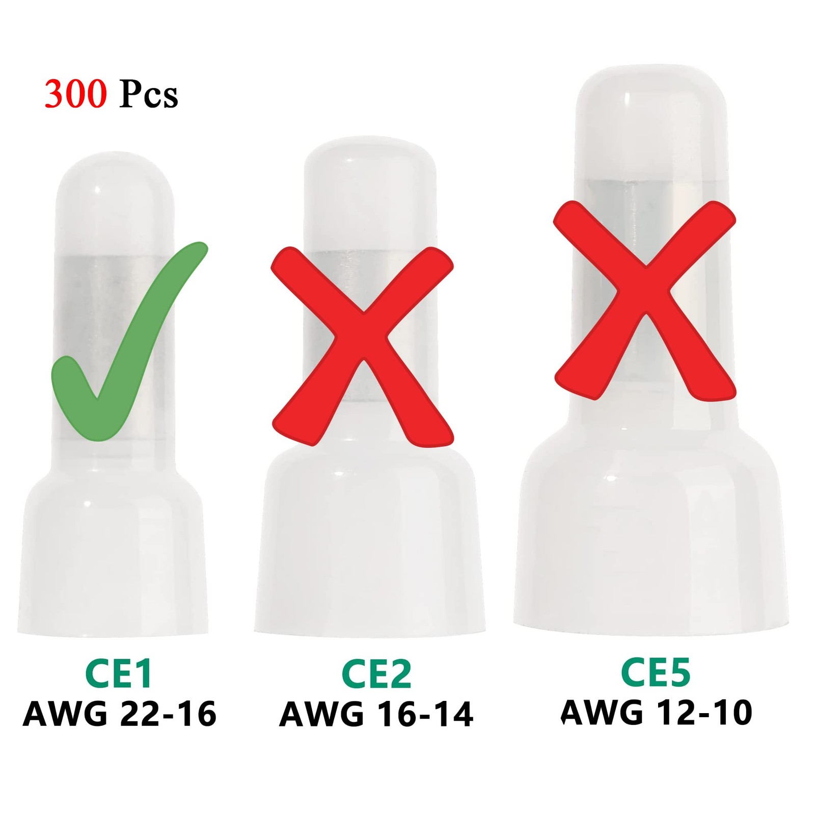 Closed End Crimp Connectors 22-16 AWG CE1 Aluminum Core Wire Cap 300 PCS