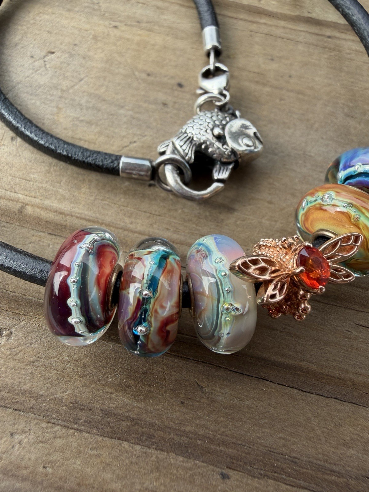 Trollbeads Fish Lock Bracelet With 5 Summersday Artisan Style Beads Phya Bead