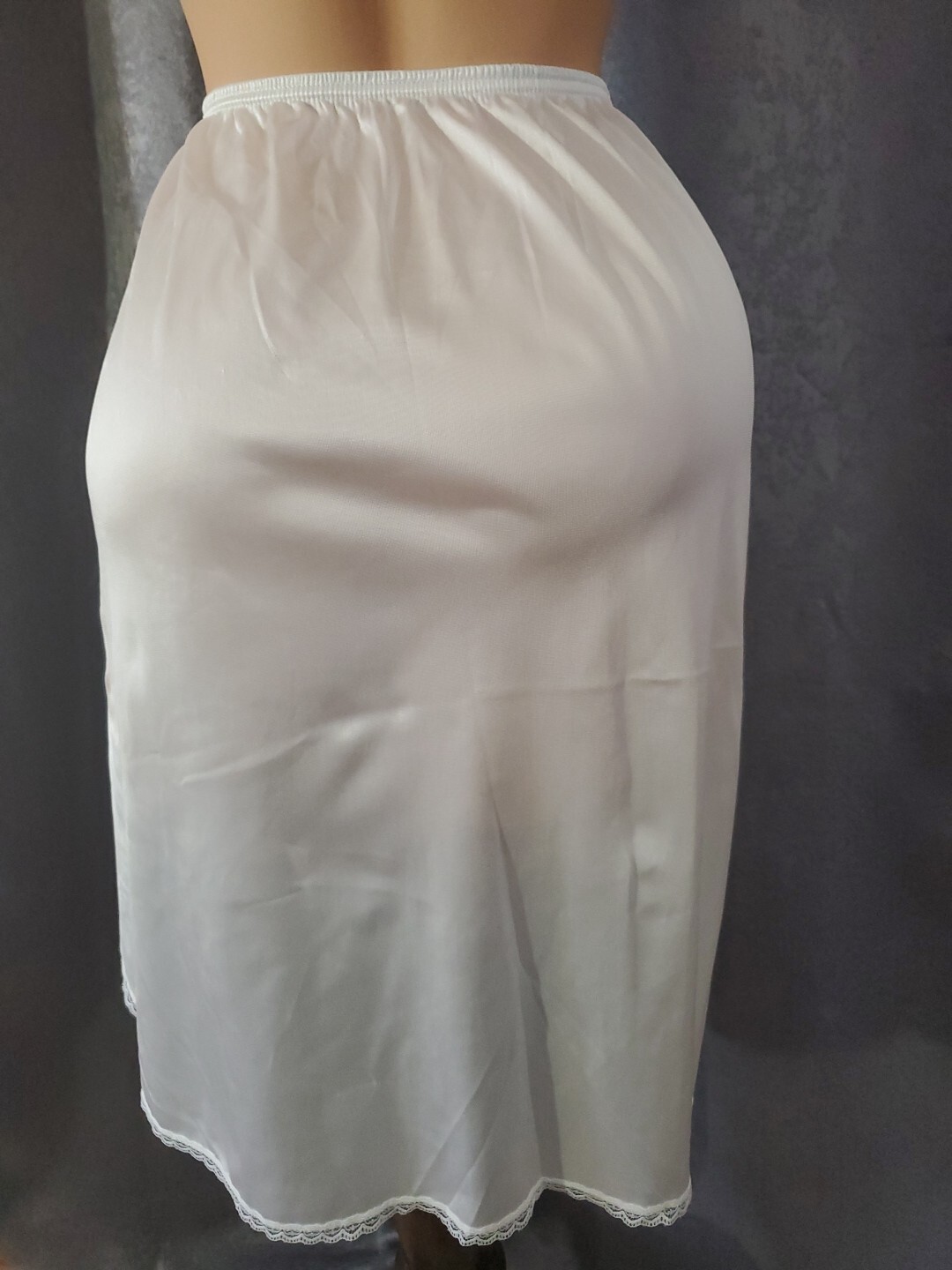 как выглядит USA VTG VASSARETTE Half Slip Skirt WHITE SATIN NYLON Lingerie WOMEN