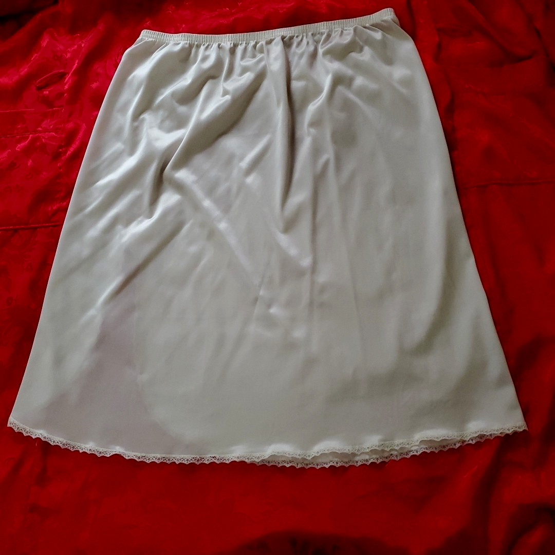 Vintage VANITY FAIR Half Slip Skirt IVORY SATIN NYLON W: 30-34 L: 24 LARGE