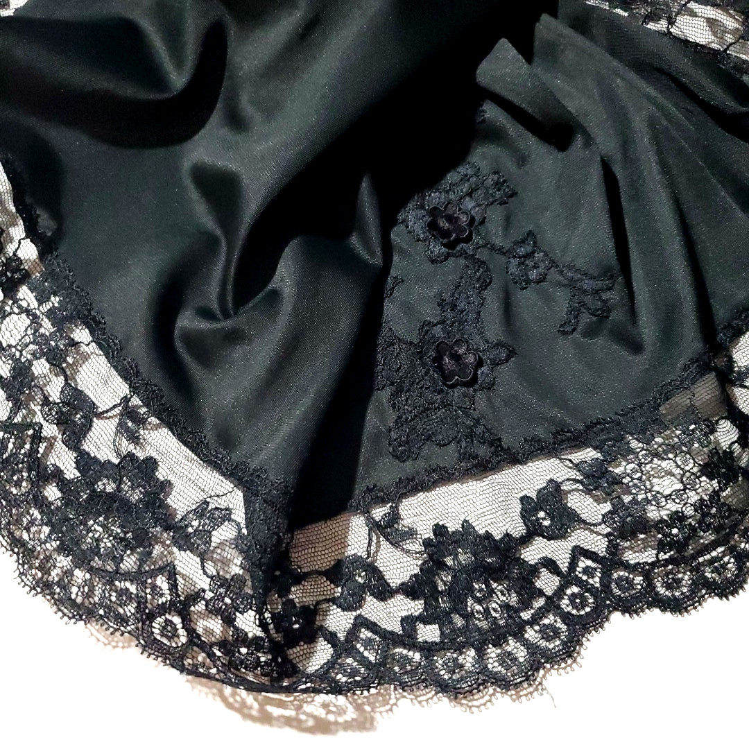 как выглядит Vintage Half Slip Skirt BLACK SATIN Silky Nylon Lacey Floral Lingerie S / XS фото