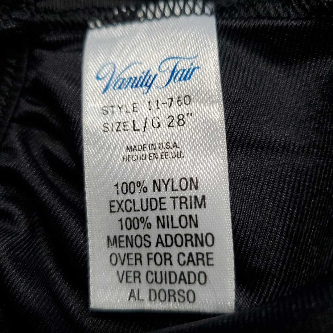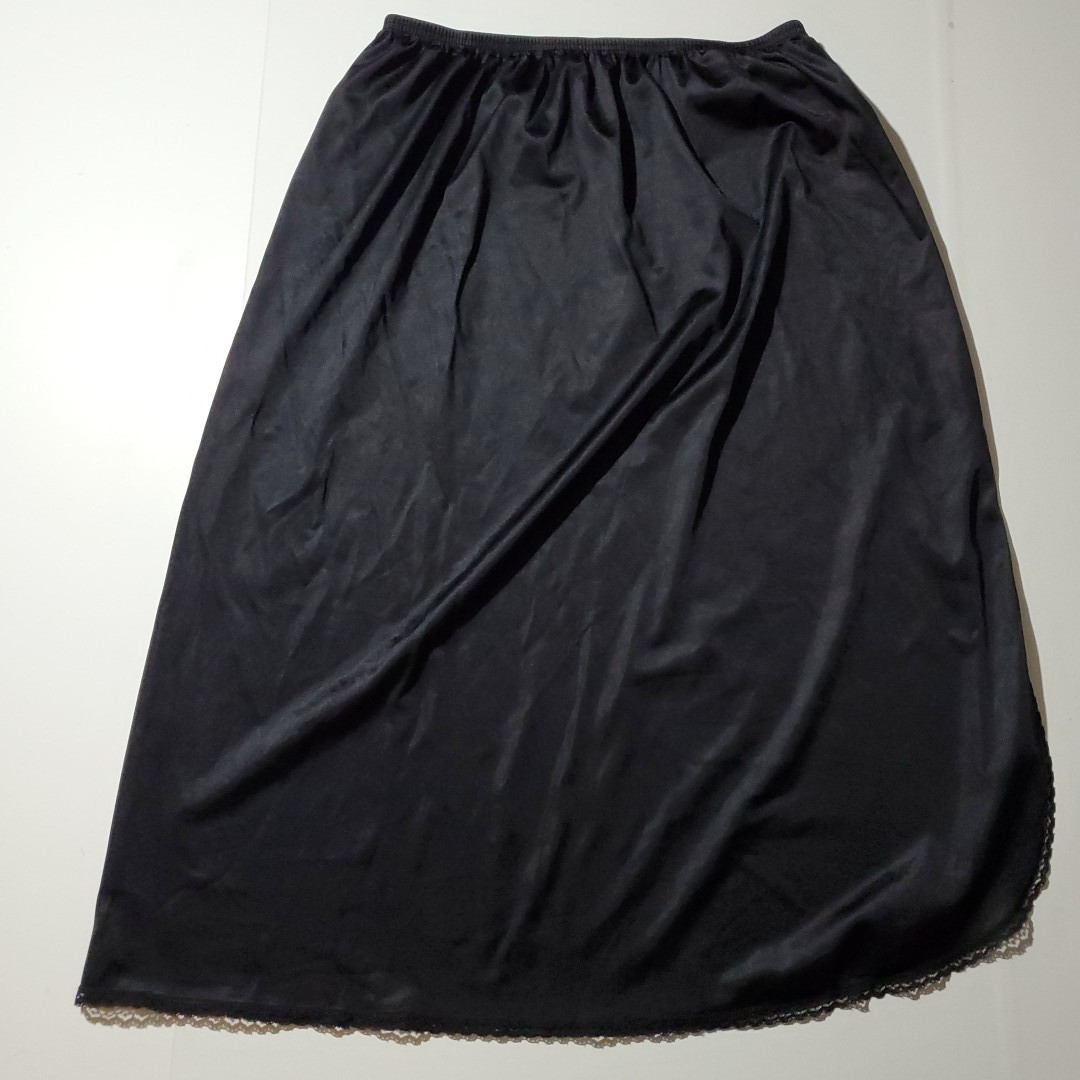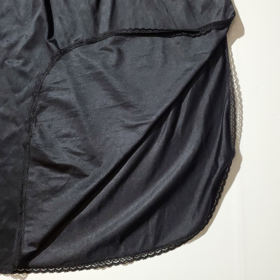 Vintage VANITY FAIR Half Slip Skirt BLACK SATIN Silky Nylon Lingerie LARGE