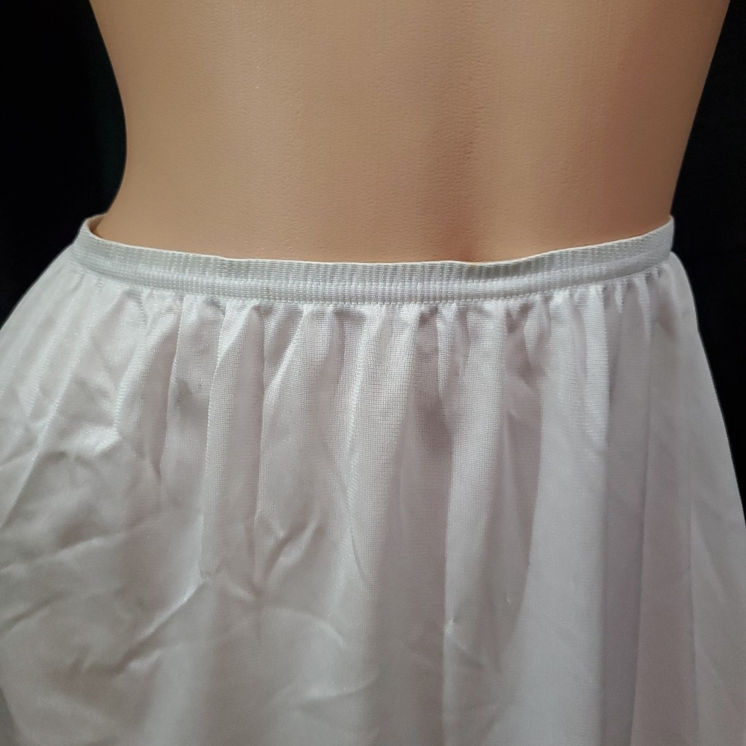 как выглядит Vintage VASSARETTE Half Slip Skirt WHITE SATIN NYLON Lacey 11105 SIZE XL фото