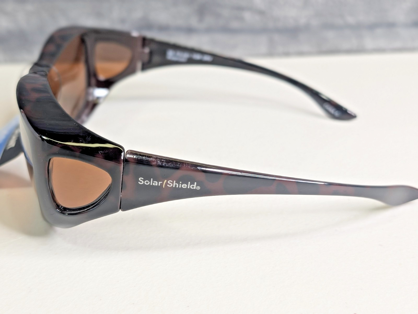 Solar Shield by Foster Grant Sunglasses Fits Over Brown Lenses Tortoise Frames