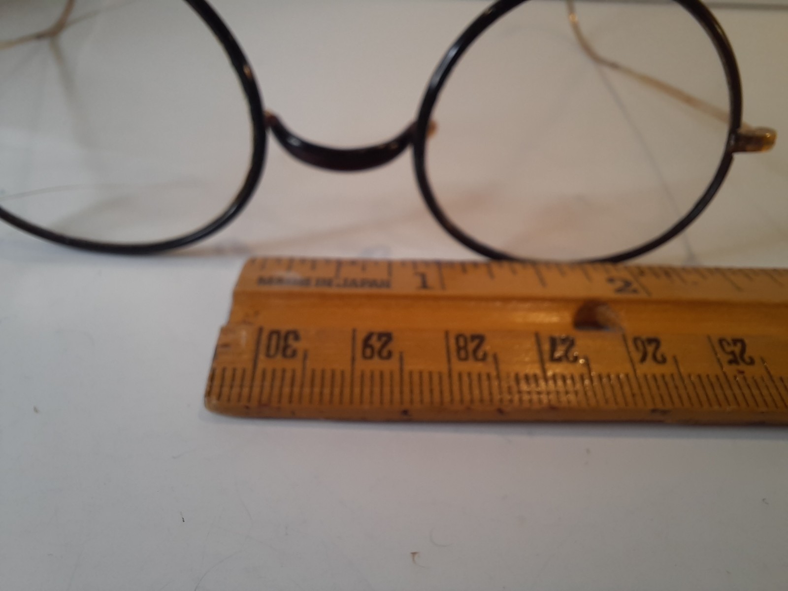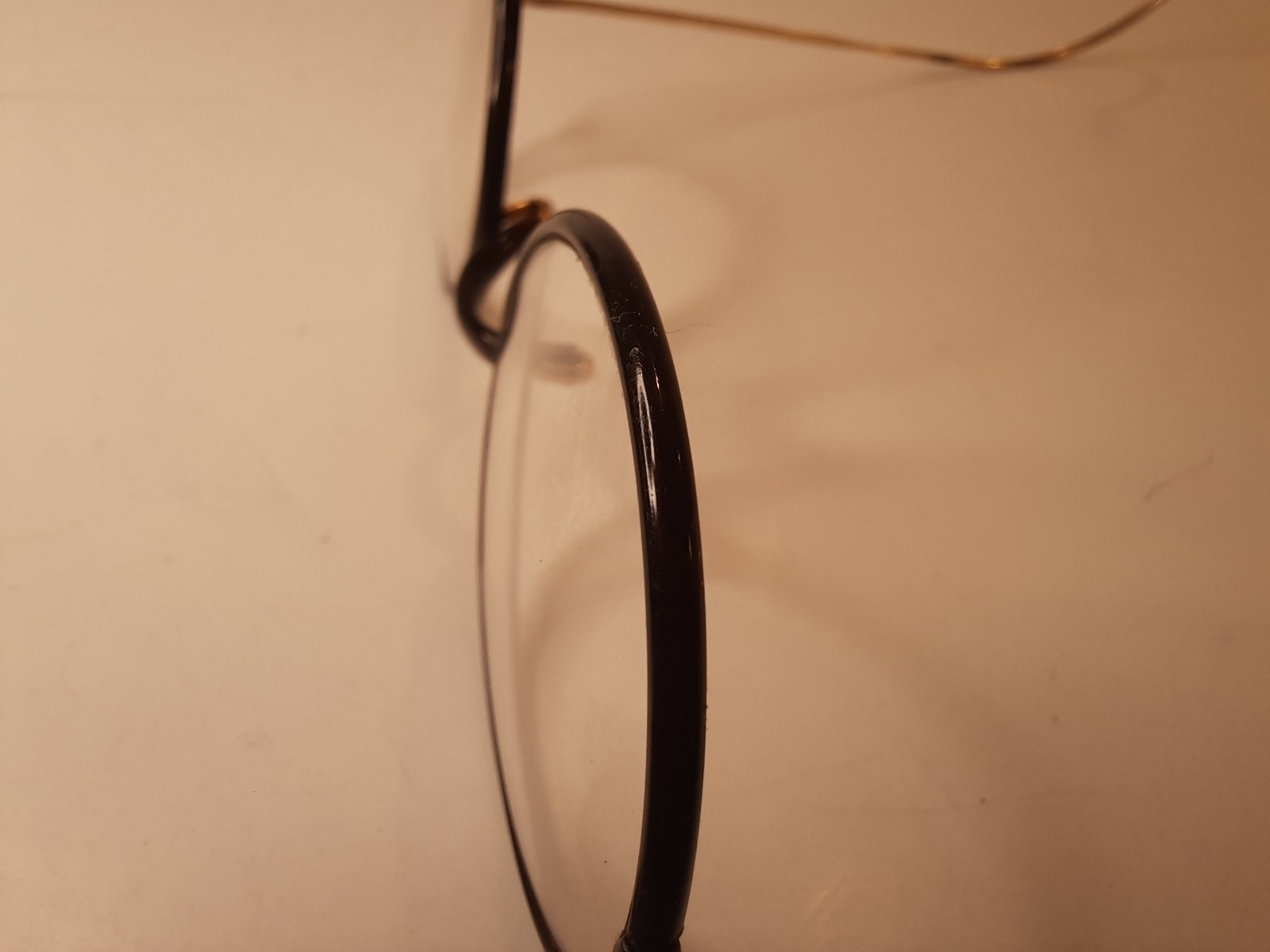 как выглядит Antique REALFIT Round Eyeglasses, Black, 4.50" w/lenses, Gold wire Temples фото