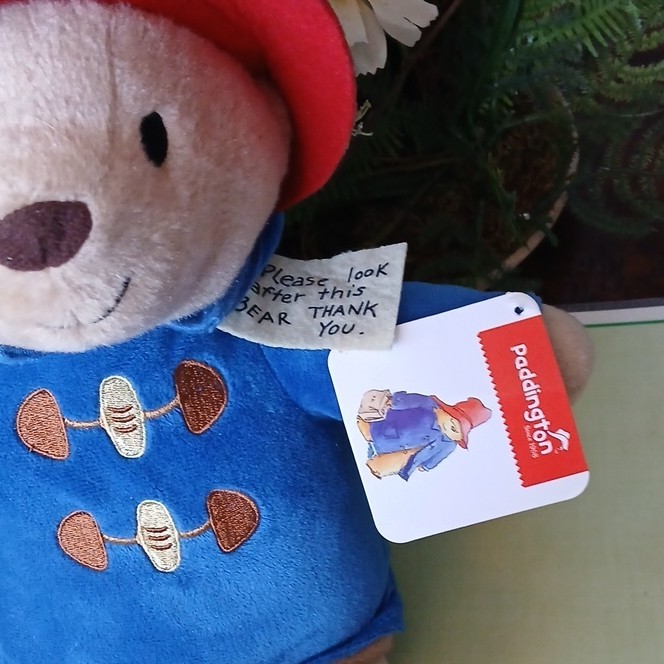 • Paddington Plush Bear Toy with Blue Coat, Red Hat, and Tag