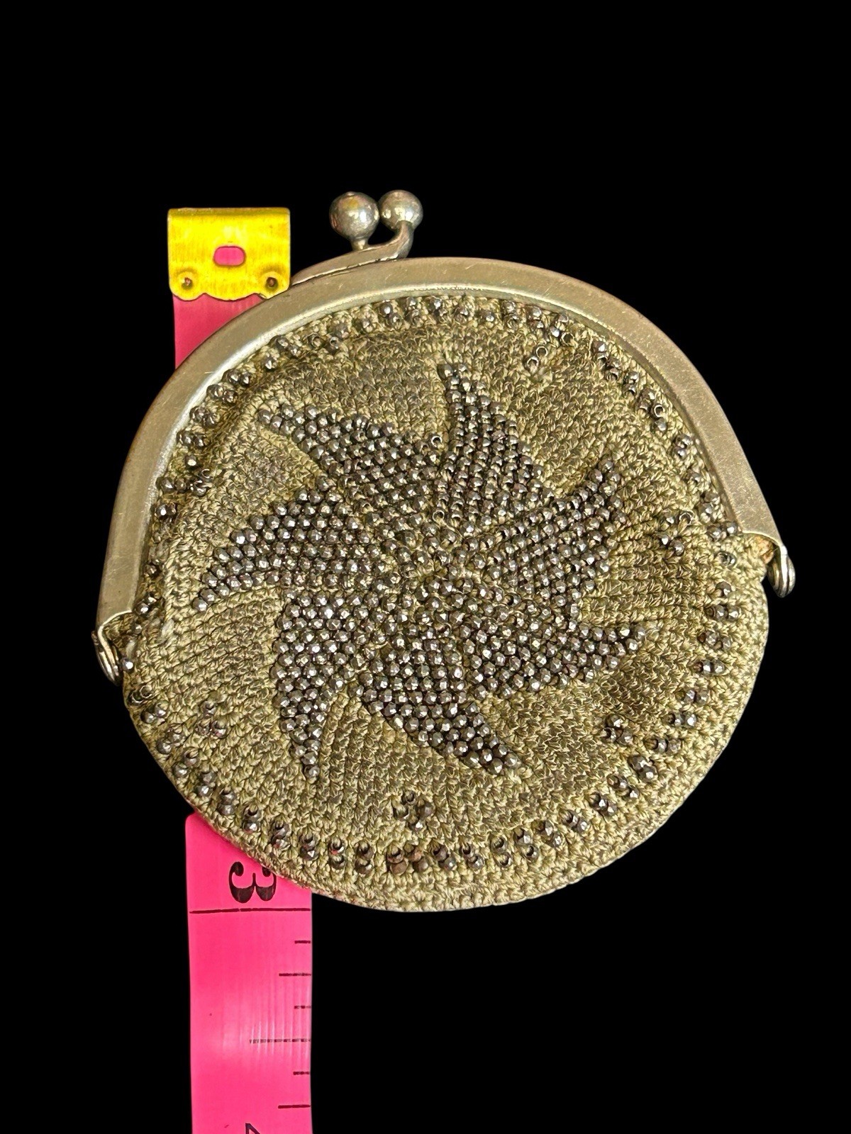 Antique Beaded Coin Purse Maple Leaf Gold Tone Steel Cut Beads 3