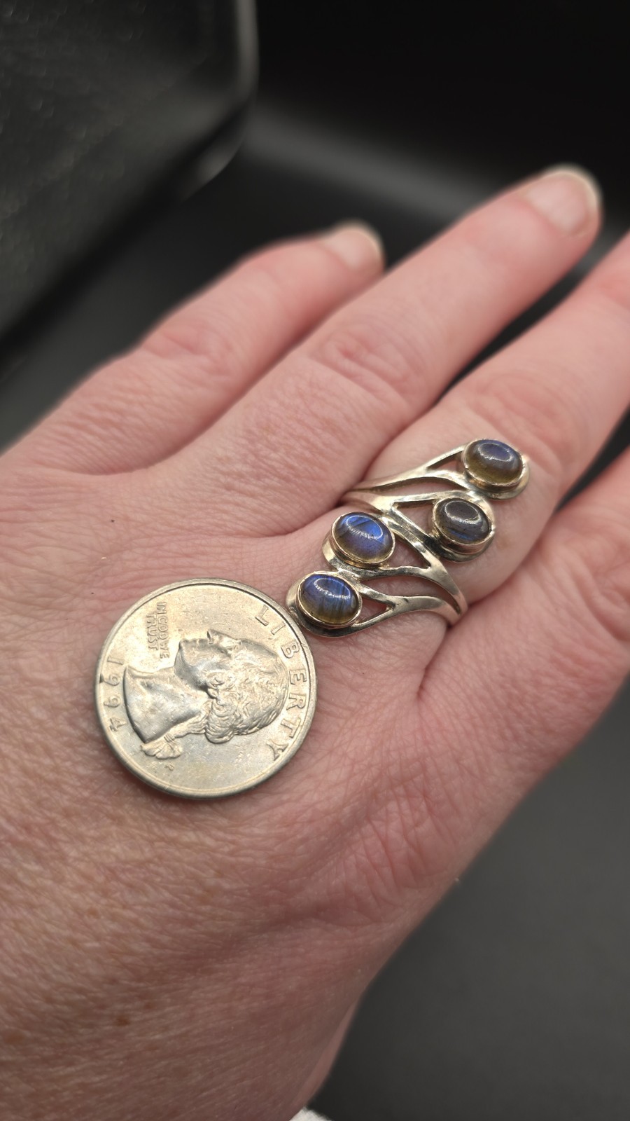 Sterling Silver Labradorite Multi Stone Ring Size 10