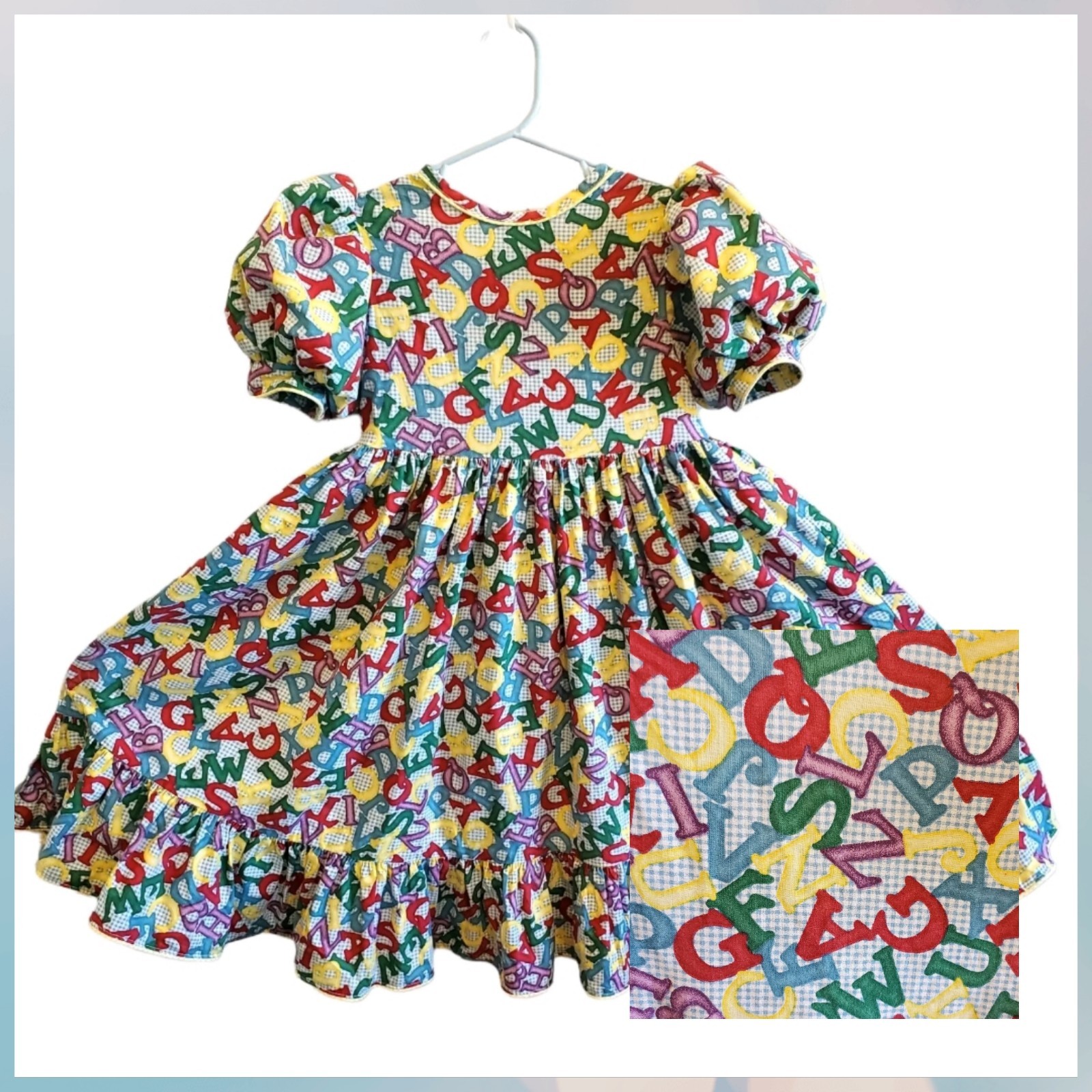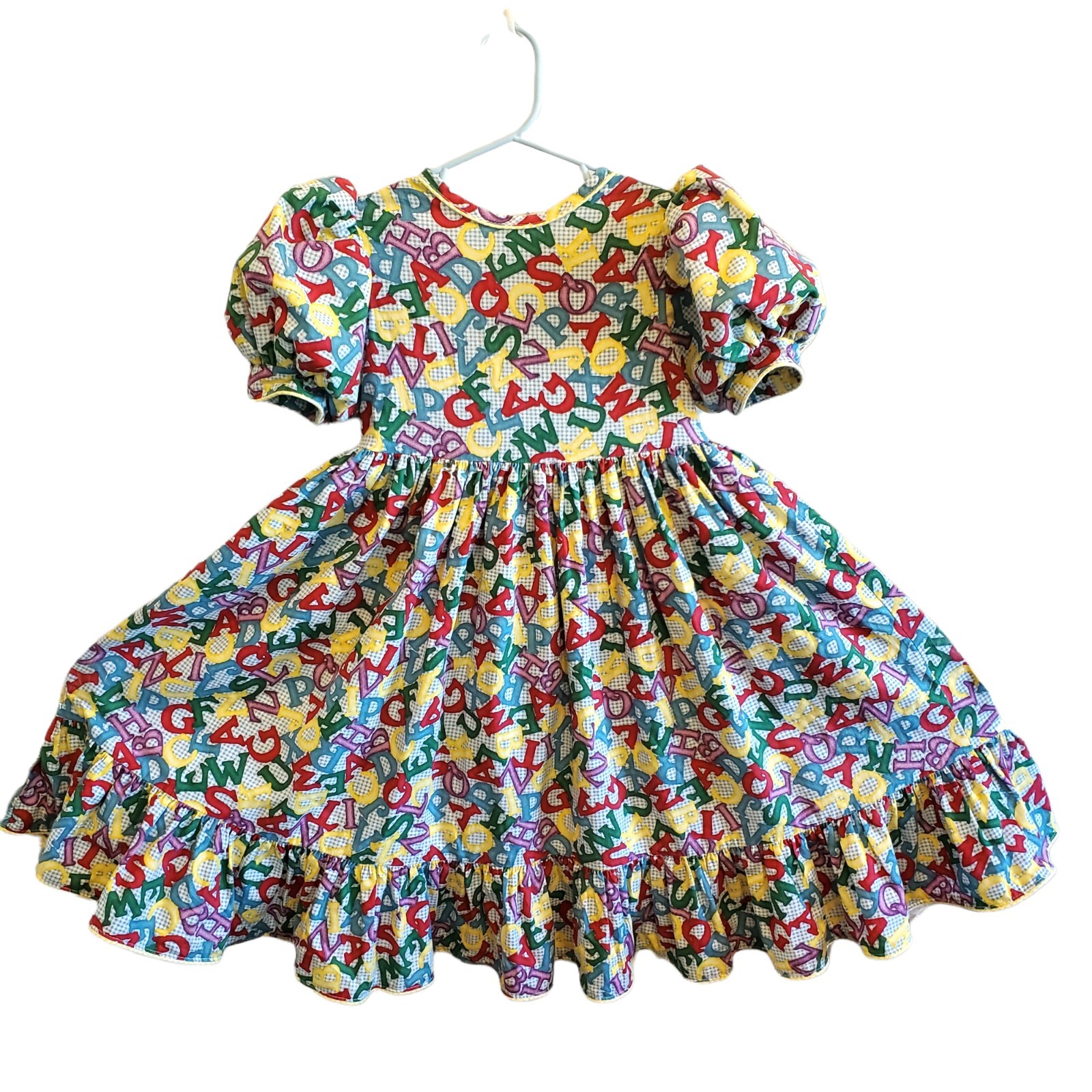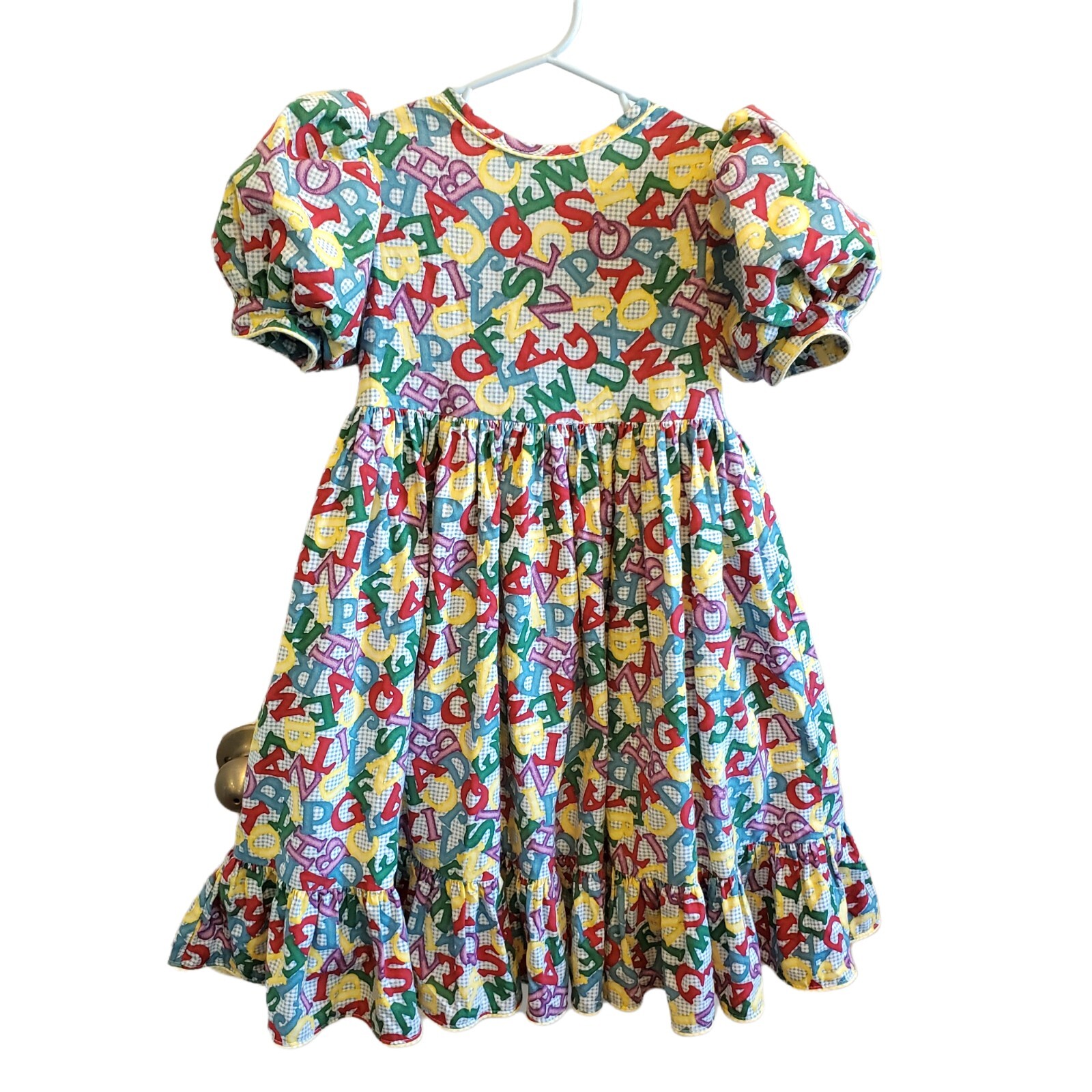 VTG Daisy Kingdom Girls Party Dress Size 4 School Pageant 90s ABCs Puff Sleeve