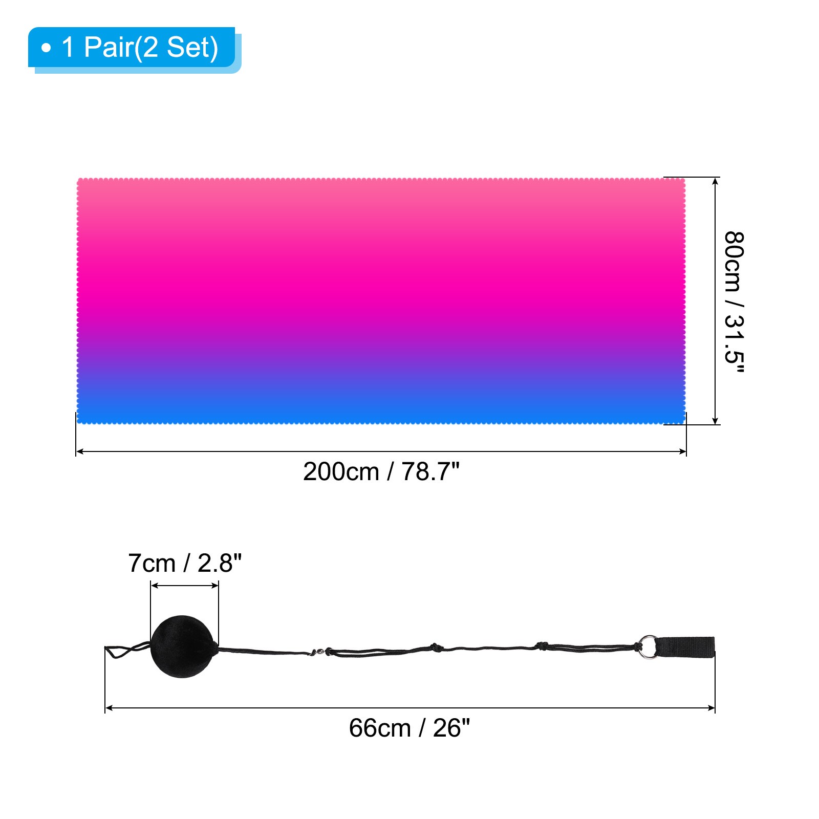 1 Pair Dance Silk Veil Poi with Throw Ball 79 x 32, Pink Purple Blue