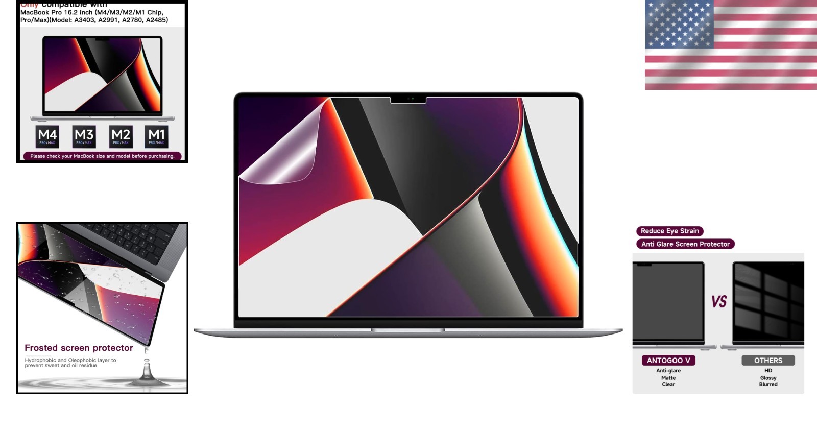 ANTOGOO Matte Screen Protector for Macbook Pro 16 Inch M1-M4