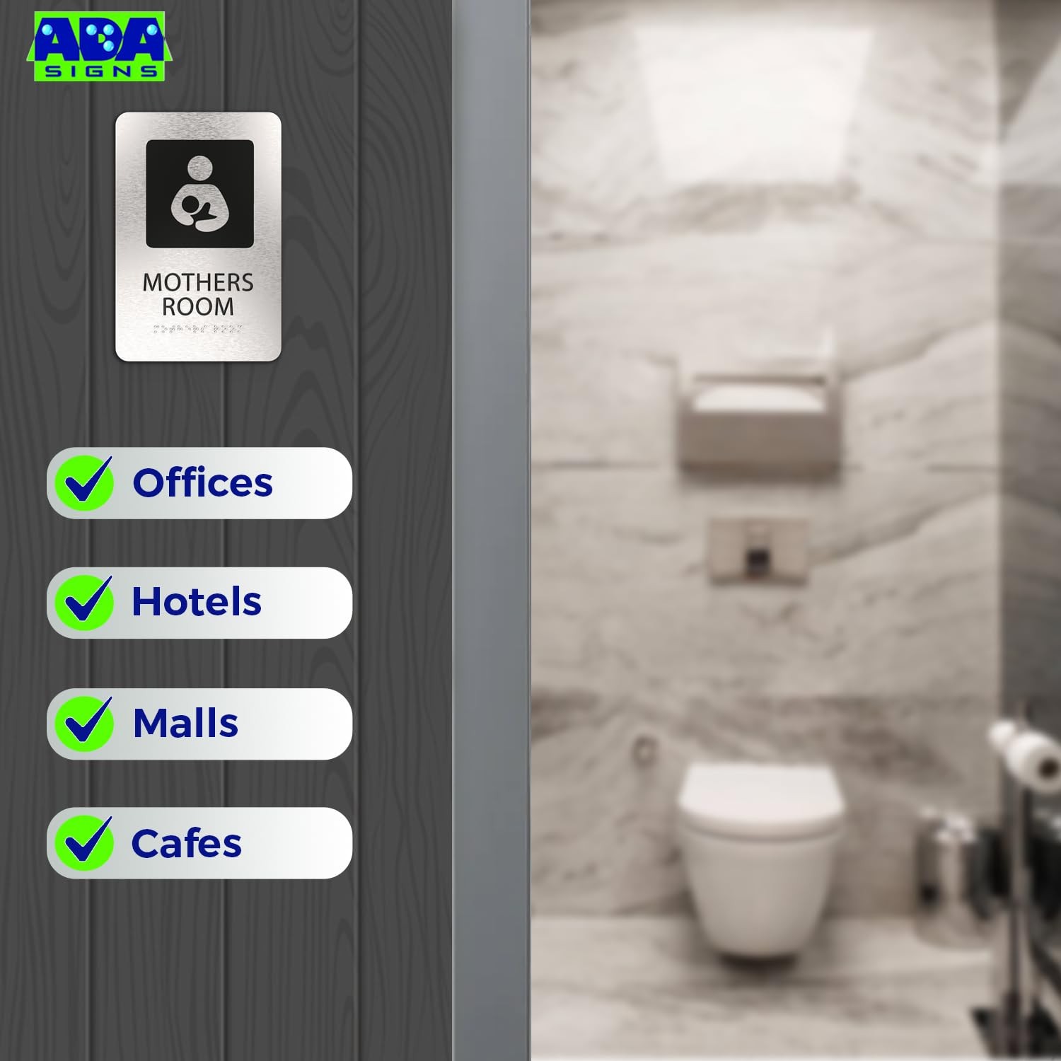 ADASigns Mothers Room Sign 6x9 Brushed Aluminum Braille ADA Restroom