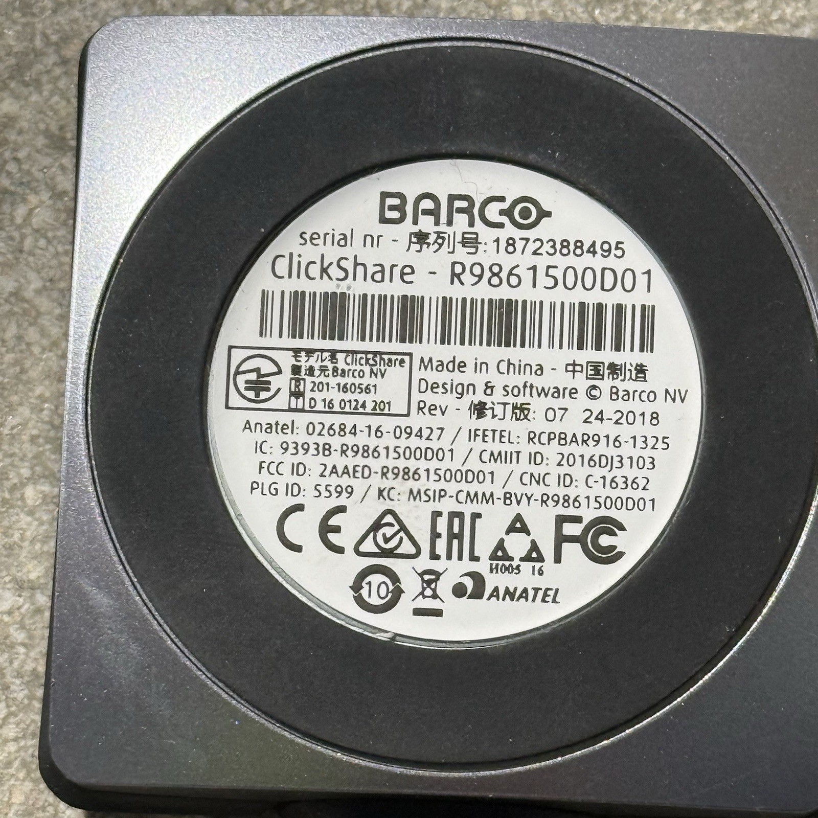 Barco ClickShare CSE-200 w/ 1 Barco ClickShare Button Tested With Power Cord
