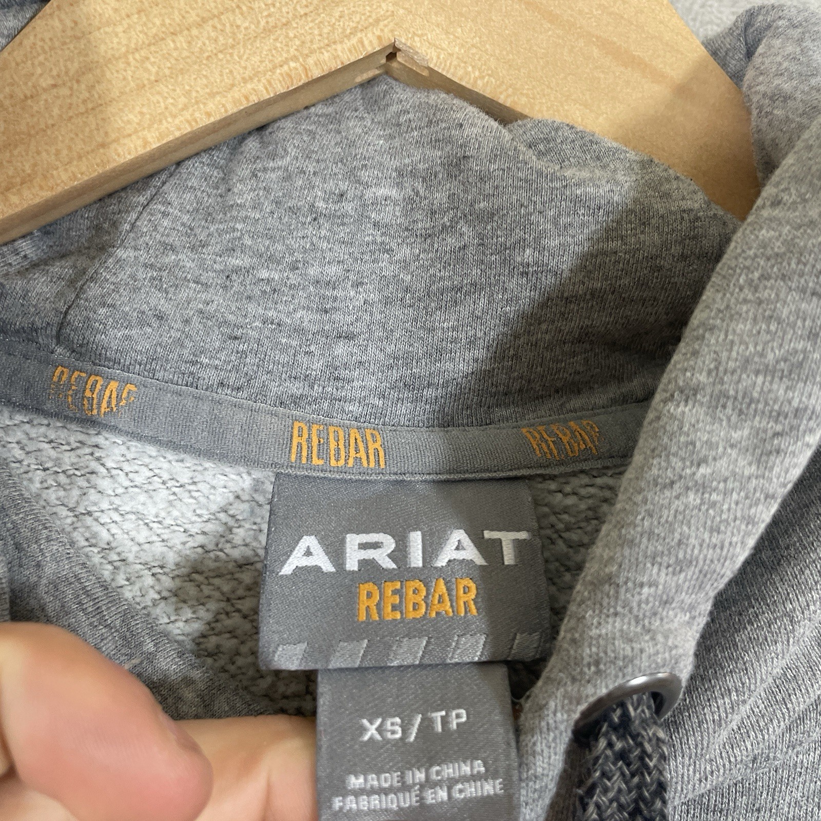 Ariat Rebar Hoodie Womens XS Gray Embroidered Logo Graphic Hood Sweatshirt READ
