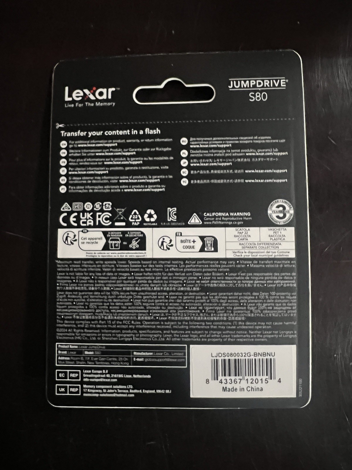 Lexar S80 USB 3.2 Gen 1 Flash Drive 32GB NEW