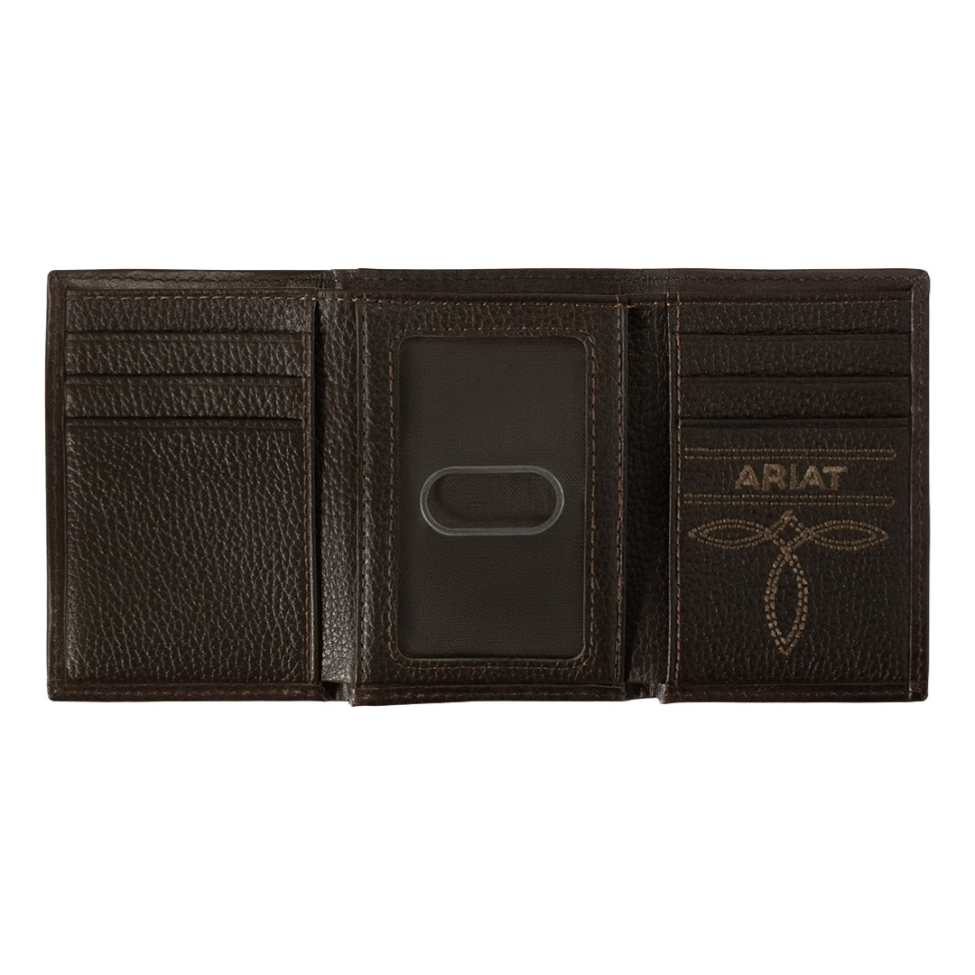Ariat Men's Calf Hair Trifold Chocolate Brown Leather Wallet A3562747