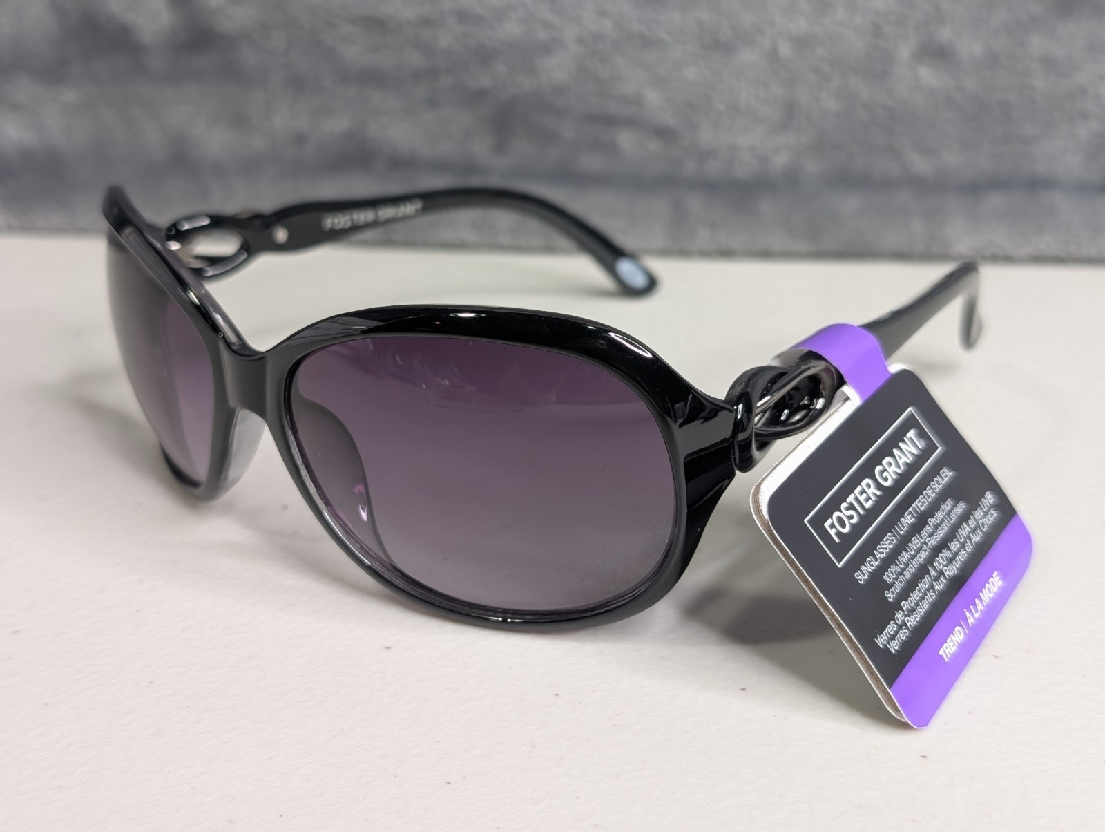 Foster Grant Second Chance Sunglasses Black Oversize Round Wrap Gradient Lenses