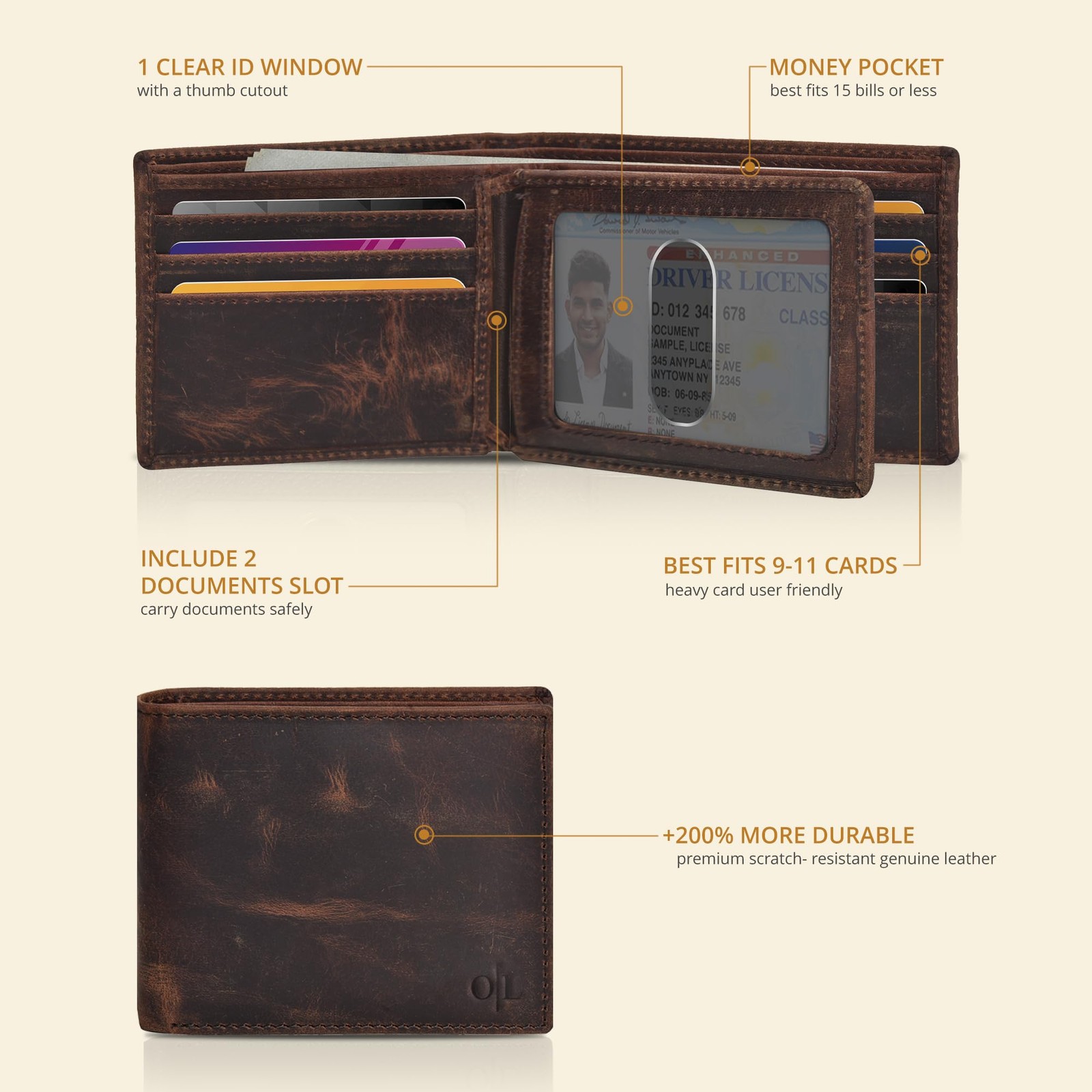 как выглядит Real Leather Bifold Wallet for Men - Wallets with Small, Vintage Brown-No Box фото