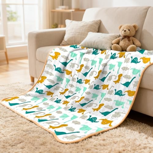Muslin Baby Blanket Thicker, 30x40 Organic Cotton Newborn 30x40 1 Dinosaur