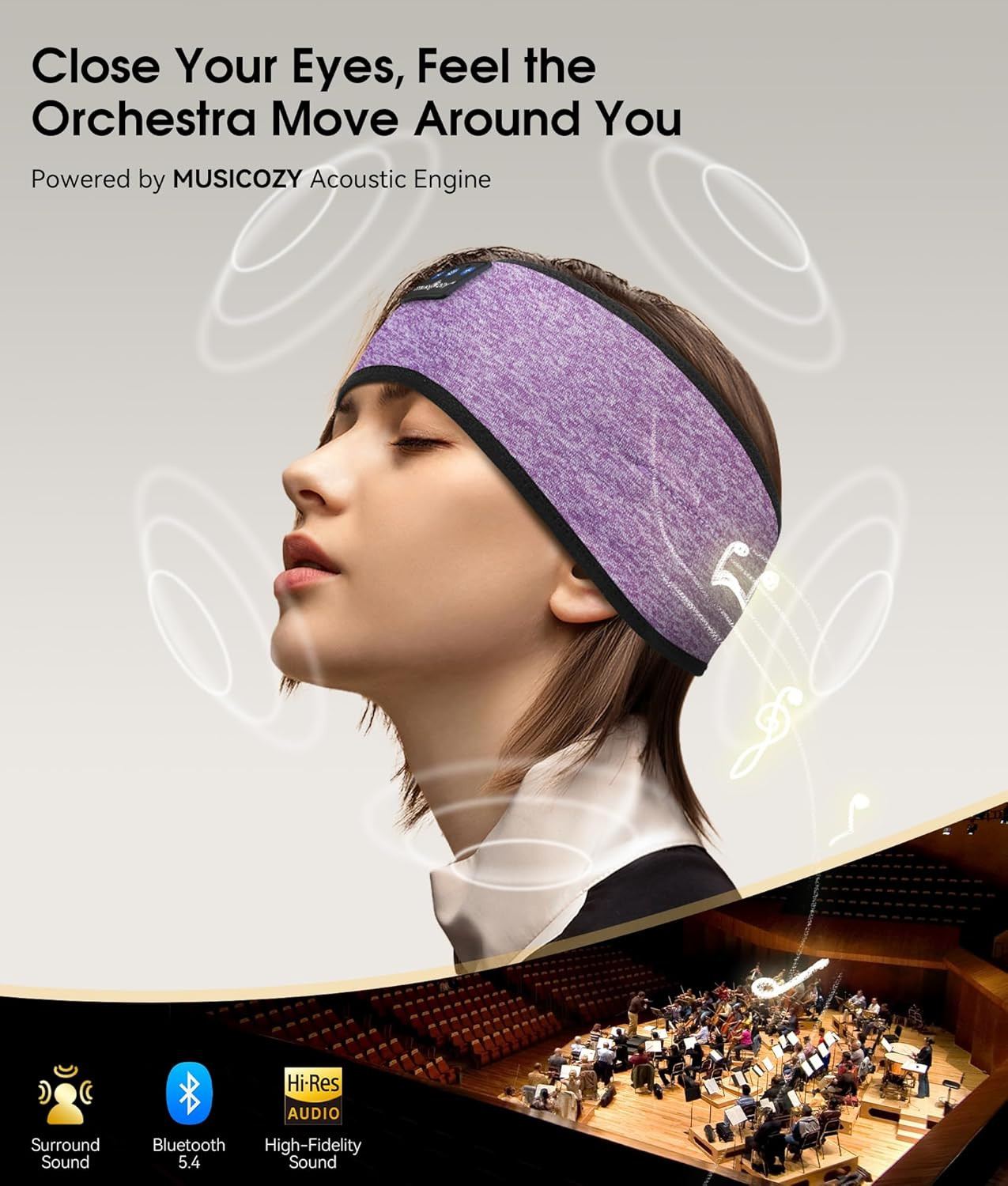 Sleep Headphones Bluetooth 5.4 Headband, Wireless Earphones Music Sleep Earbun