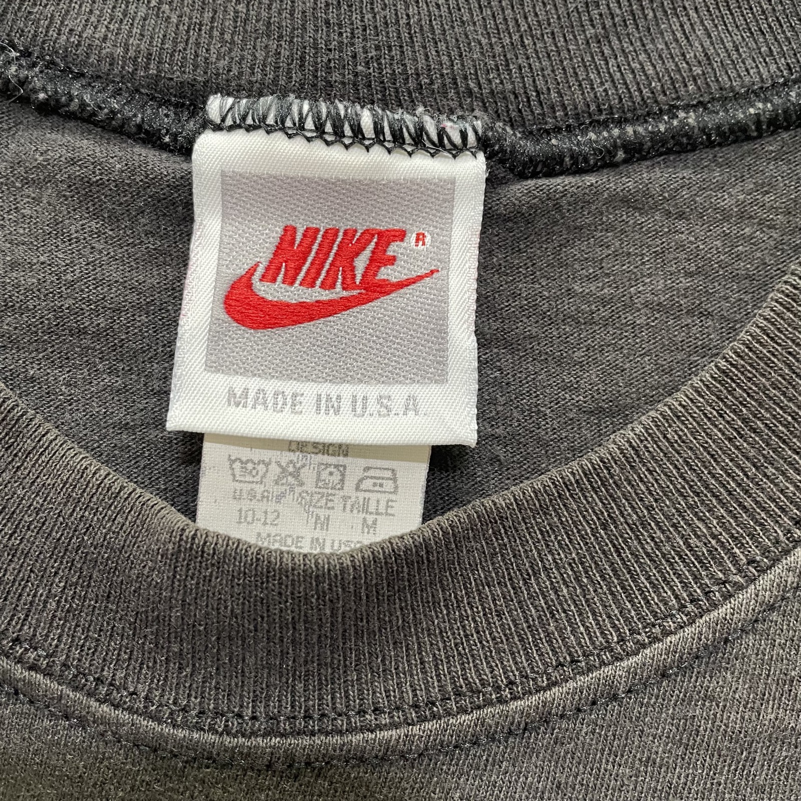 как выглядит Vintage Nike Shirt Womens Medium Black Crop Swoosh Abstract Made USA 90s фото
