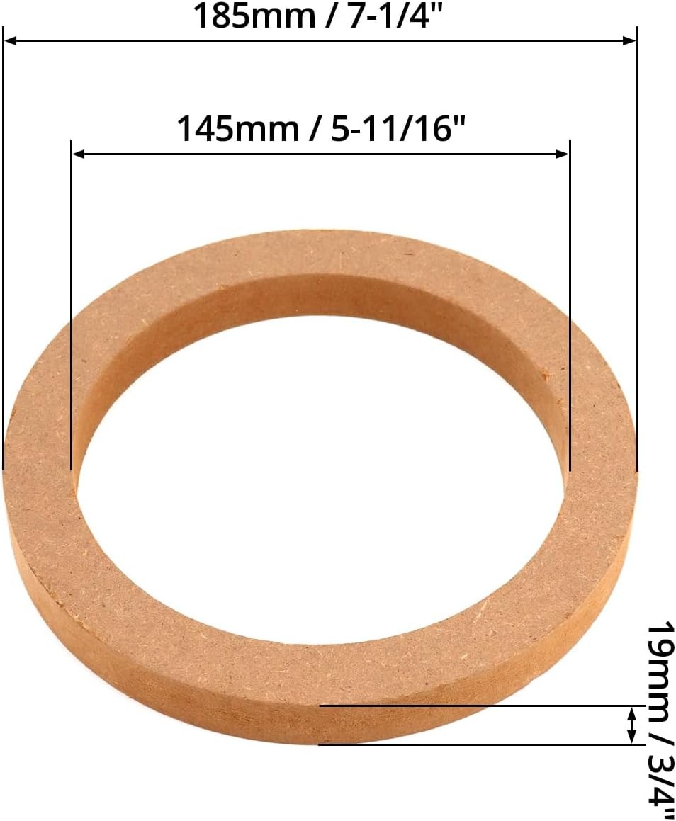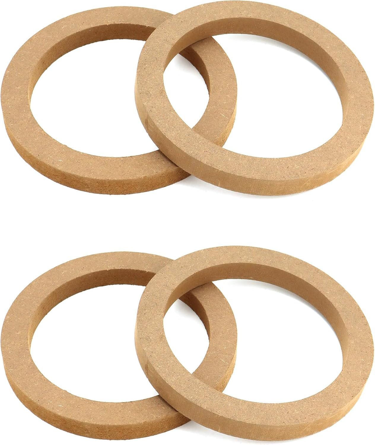 QWORK Wooden Speaker Spacer Rings, 4 Pcs 6.5 Car MDF Ring, 4 Pack