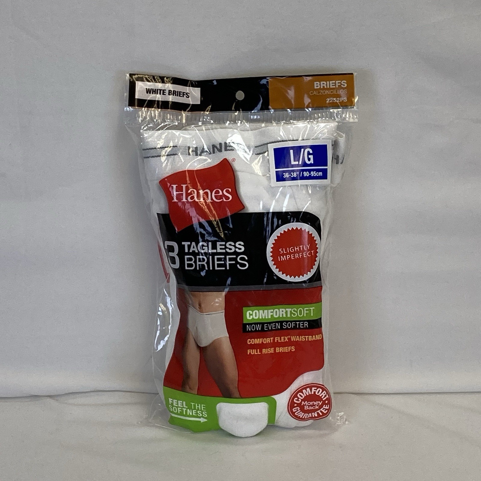 Hanes White Tagless Briefs Men's Size Large White 3 Pack NEW -Slightly Imperfect