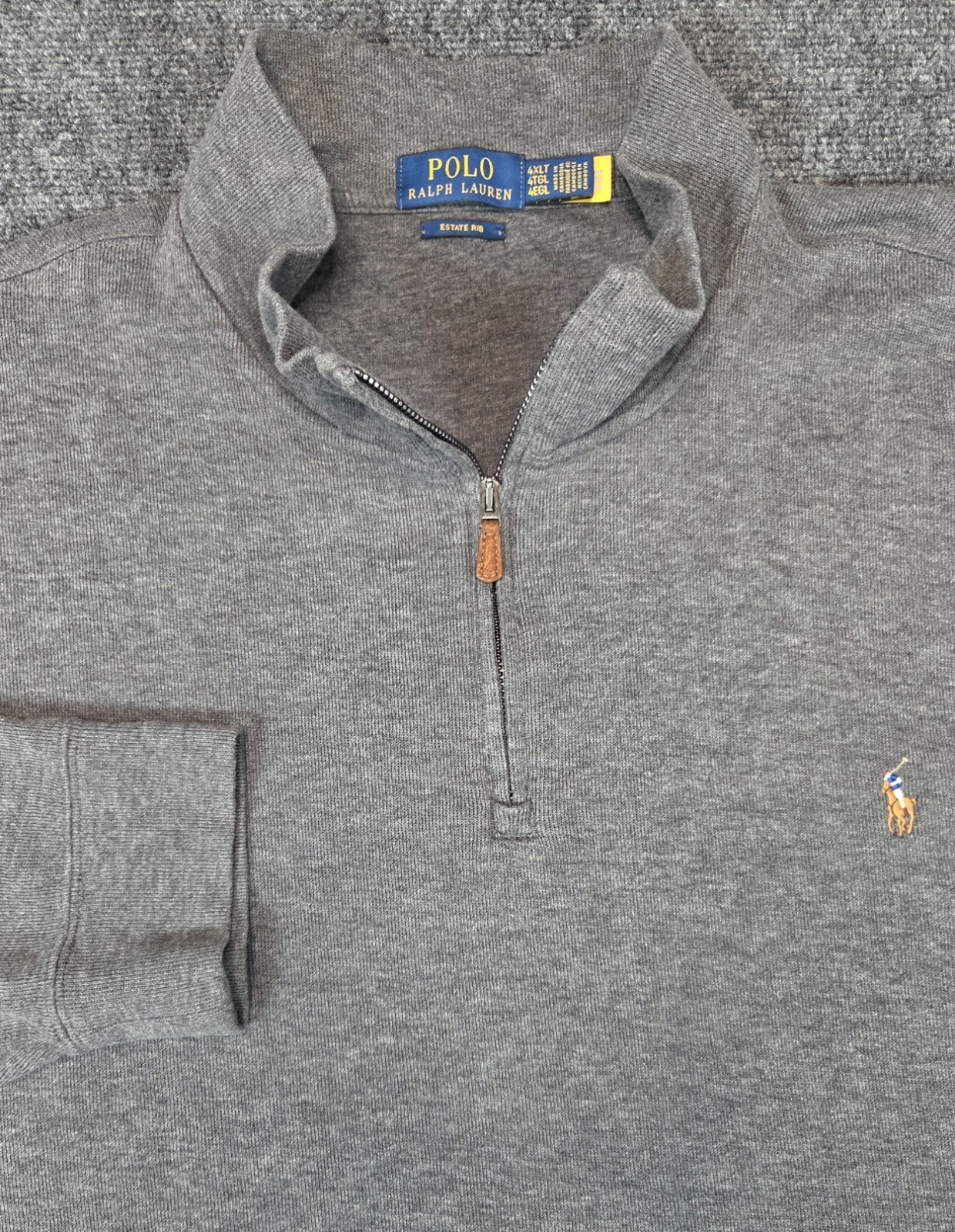 Polo Ralph Lauren 1/4 Zip Sweater Mens 4XLT Gray Estate Rib