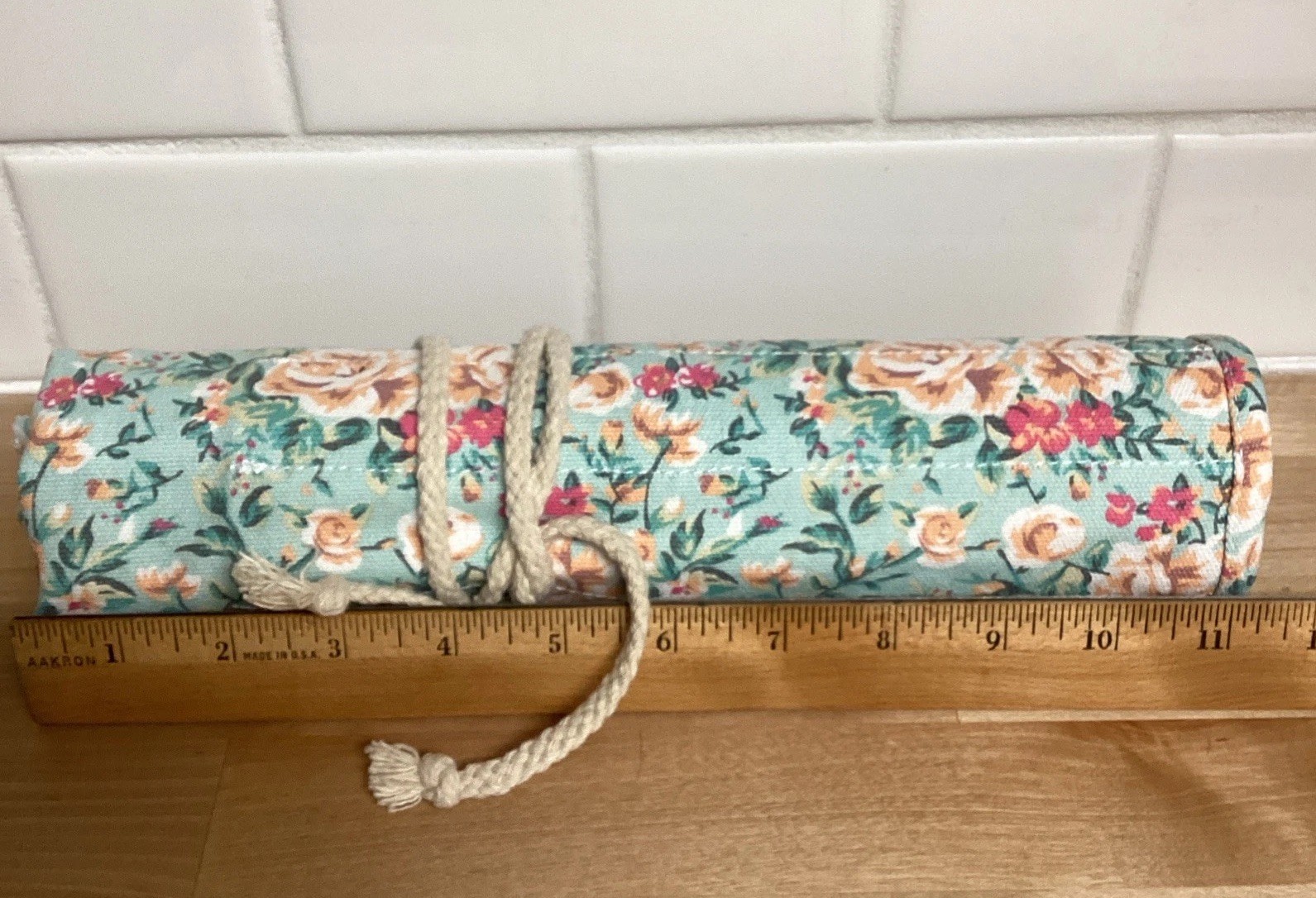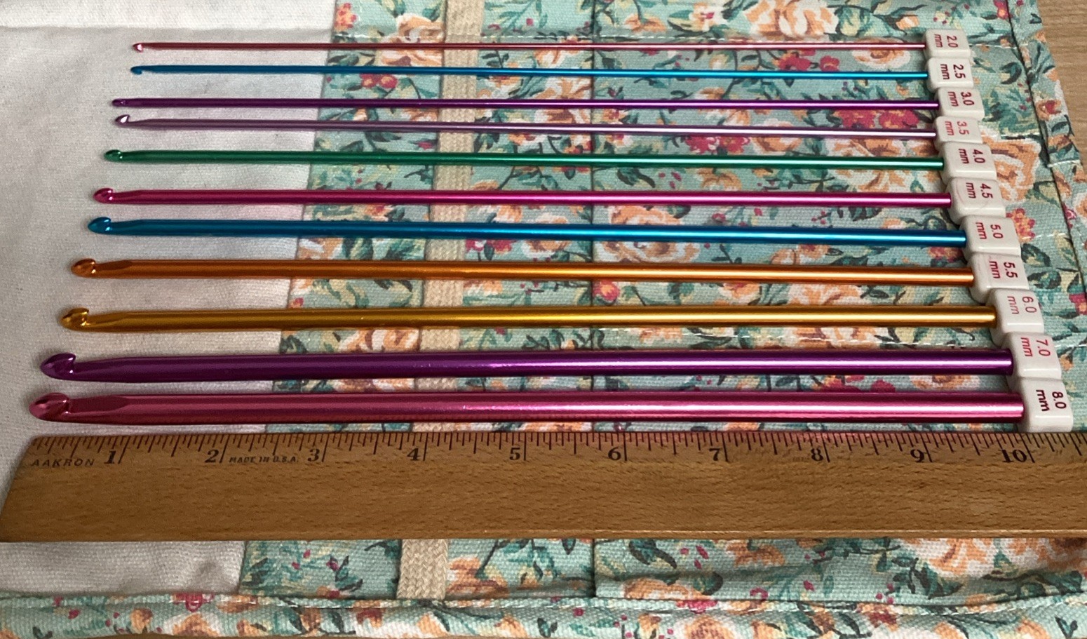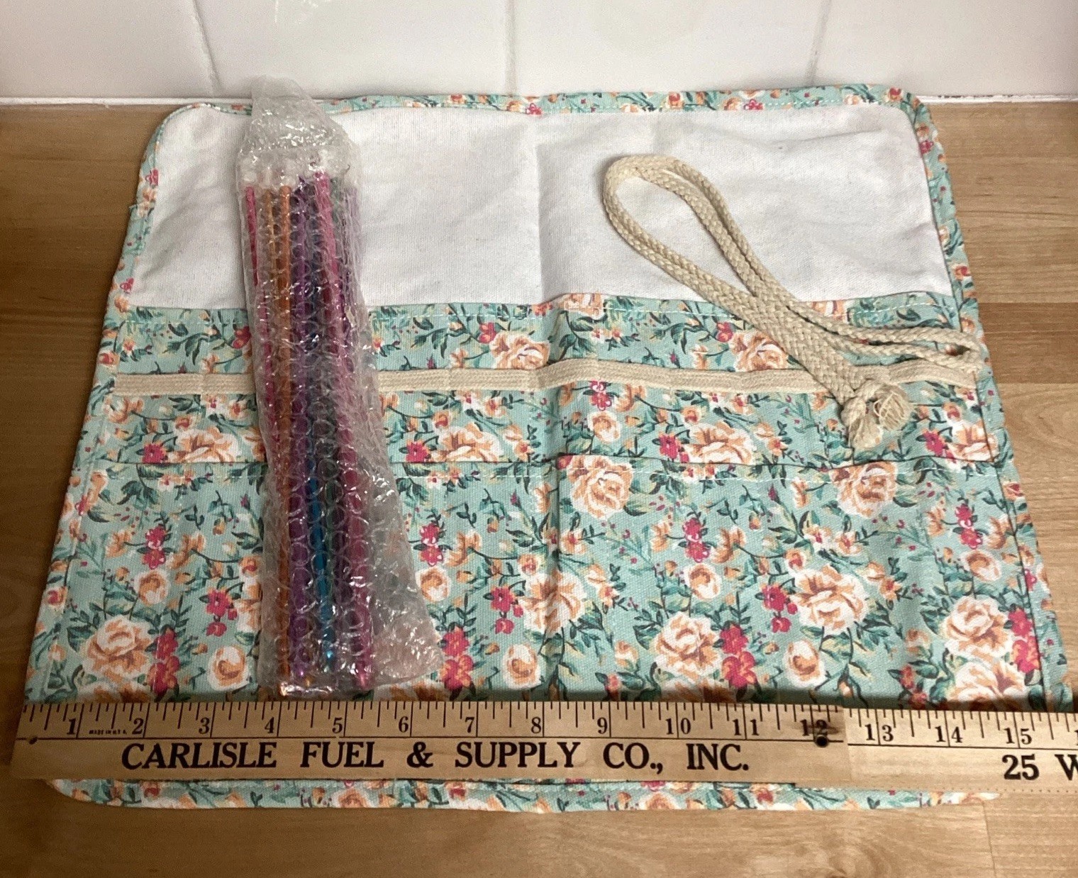 Tunisian Crochet Hooks Set Floral Fabric Roll Case 2mm to 8mm Hooks 12pc Set NEW