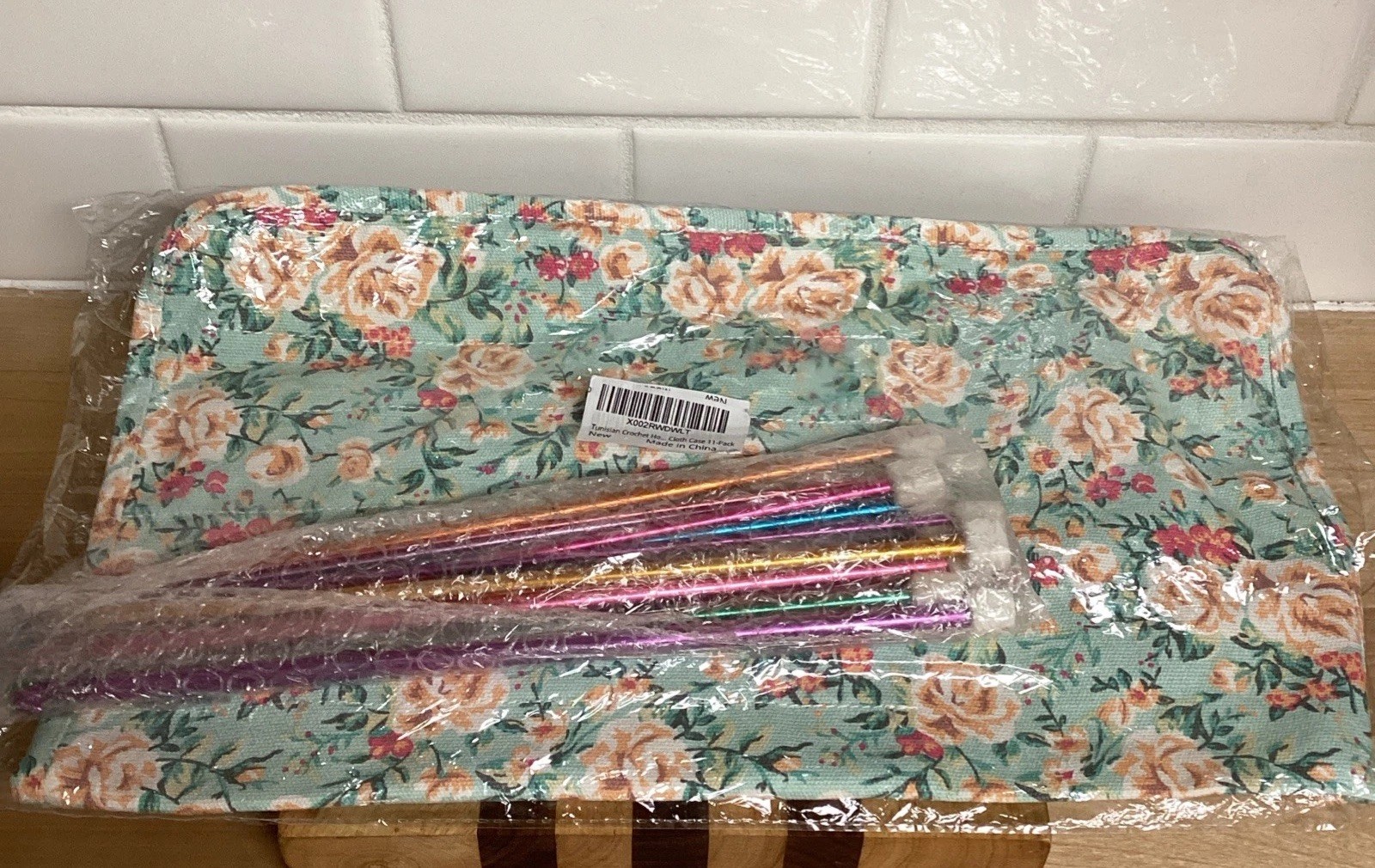 как выглядит Tunisian Crochet Hooks Set Floral Fabric Roll Case 2mm to 8mm Hooks 12pc Set NEW фото