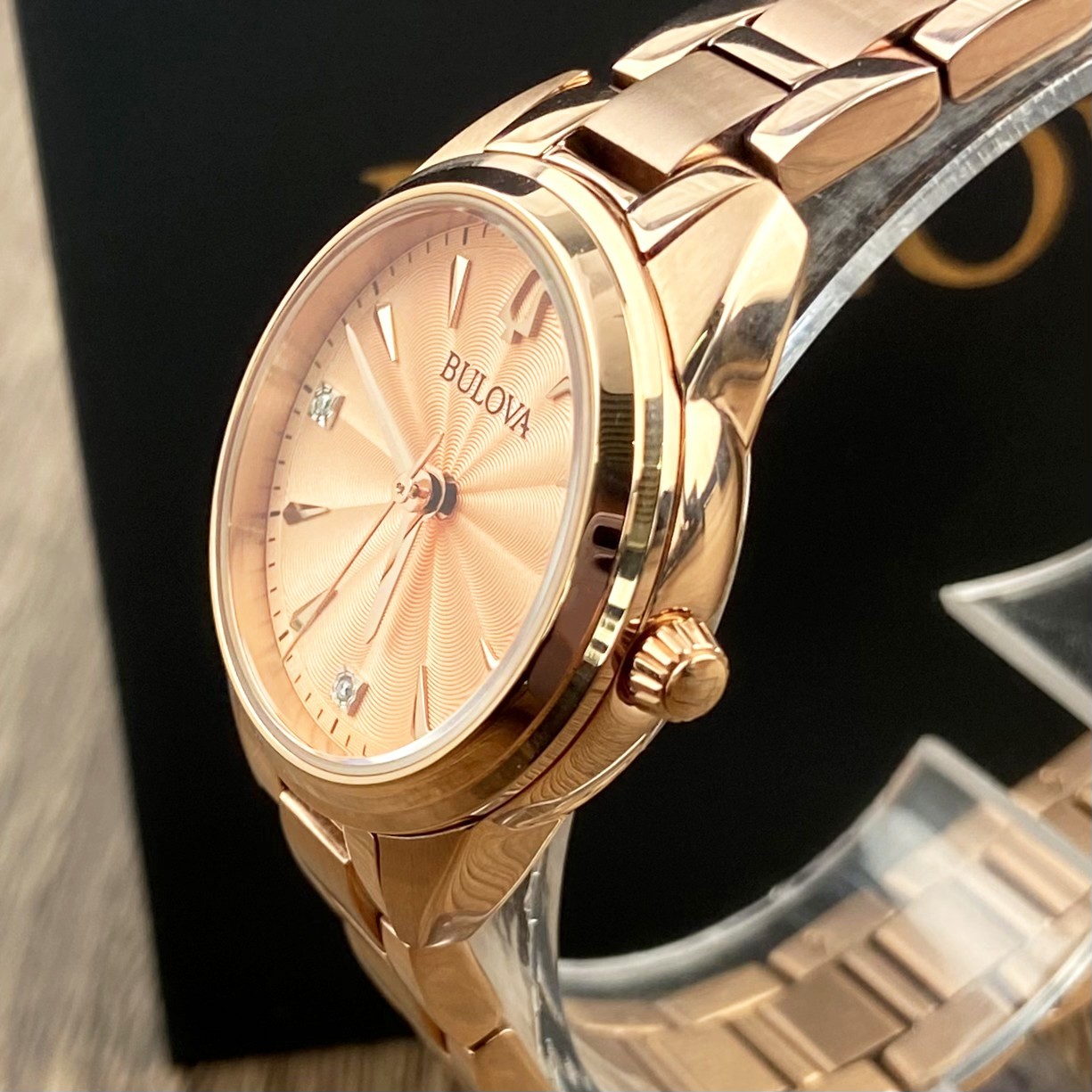 как выглядит Bulova Sutton 97P151 Rose Gold Diamonds Dial Stainless Steel Women