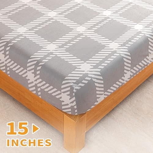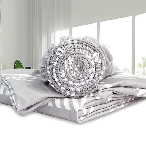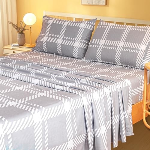 Microfiber Flannel Sheet Set -Luxury Printed 4 Piece Bedding King Gray