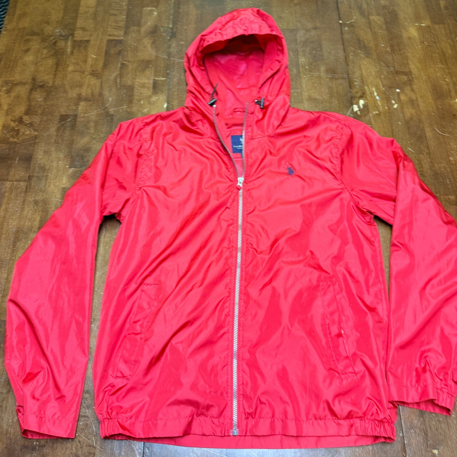 U.S. Polo Assn Windbreaker Jacket Mens Medium Red Excellent Hooded Full Zip