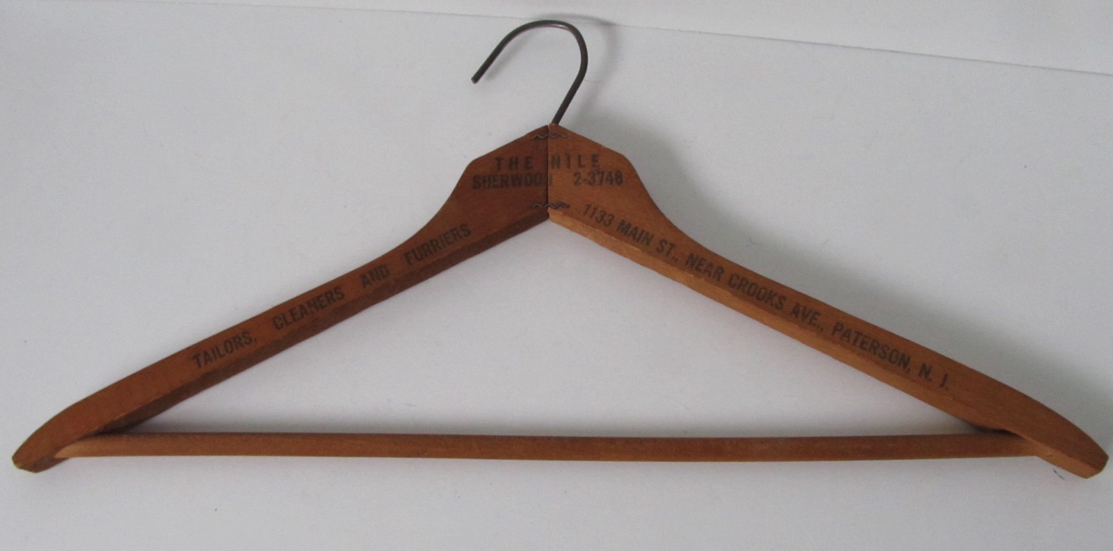 Vintage Antique Wooden Advertising Clothes Coat Hanger The Nile, Paterson, N.J.