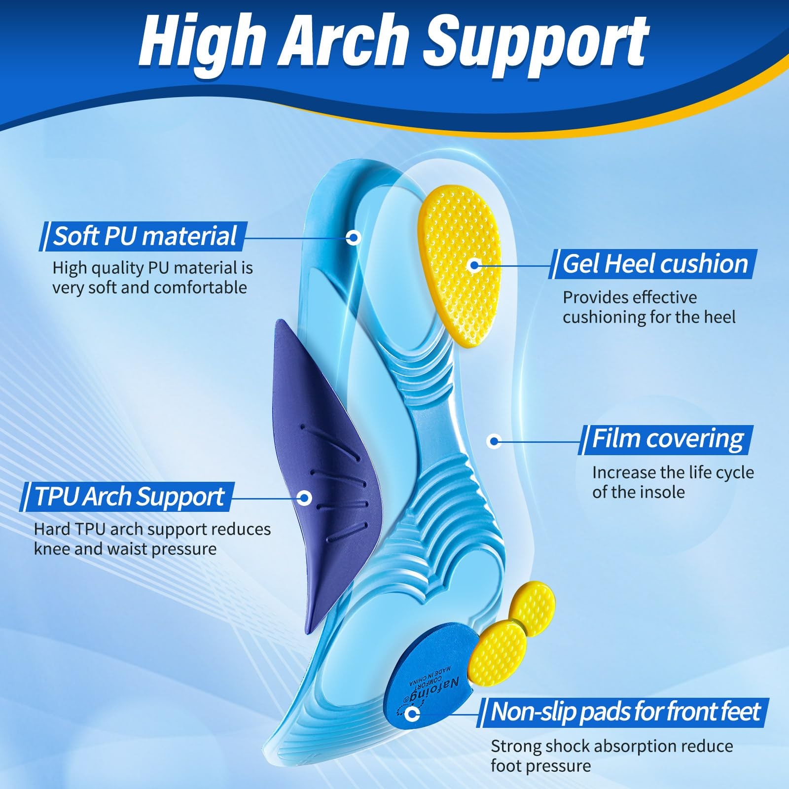Plantar Fasciitis Relief Orthotic Insoles Arch Support Inserts Shock Absorbing